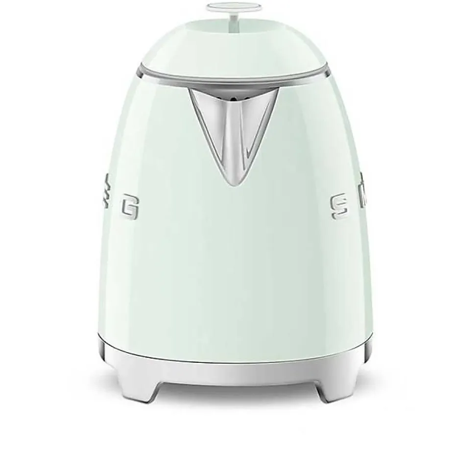 Bouilloire Smeg KLF05PGEU MINI VERT D’EAUCapacité 0,8 l – Puissance 1400 WattsFiltre inox à calcaire intégré non amovibleCouvercle à ouverture large (80°)Base rotative à 360°C – Arrêt automatique.