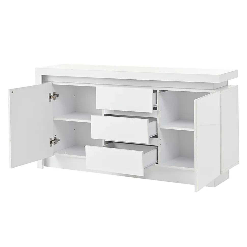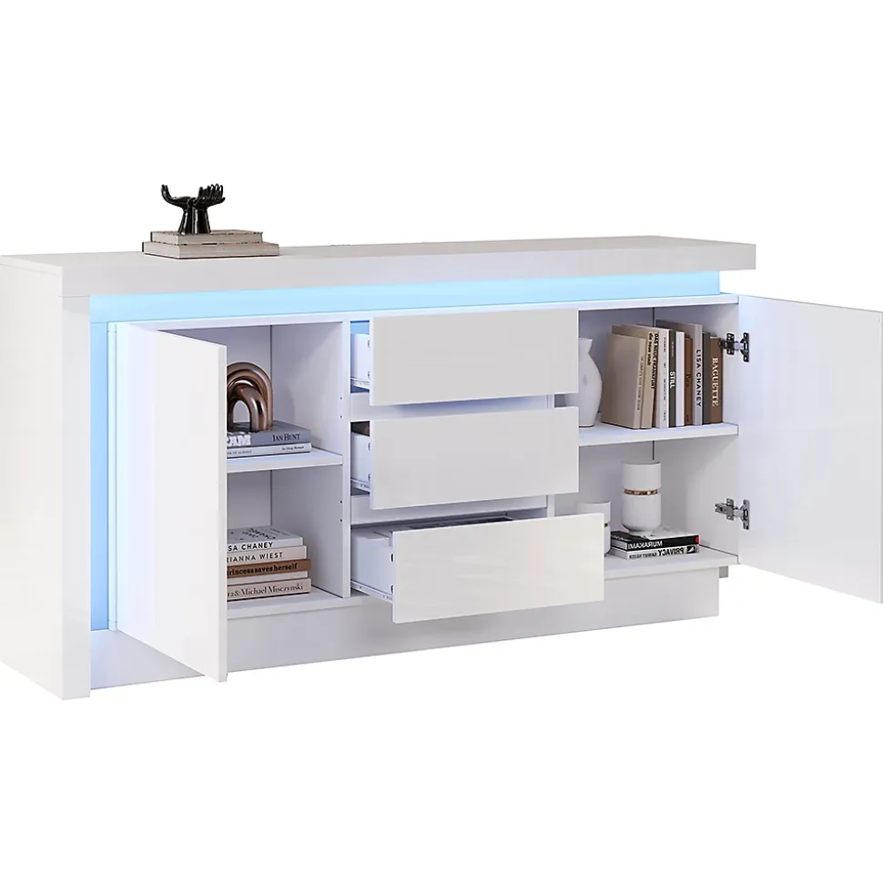 - Ambiance LED intelligente : les bandes lumineuses LED peuvent être contrôlées via une application mobile et offrent une expérience impressionnante pour regarder des films ou un éclairage chaleureux au quotidien grâce à leur couleur et leur luminosité réglables. Le buffet préserve ainsi l’atmosphère de votre salon.