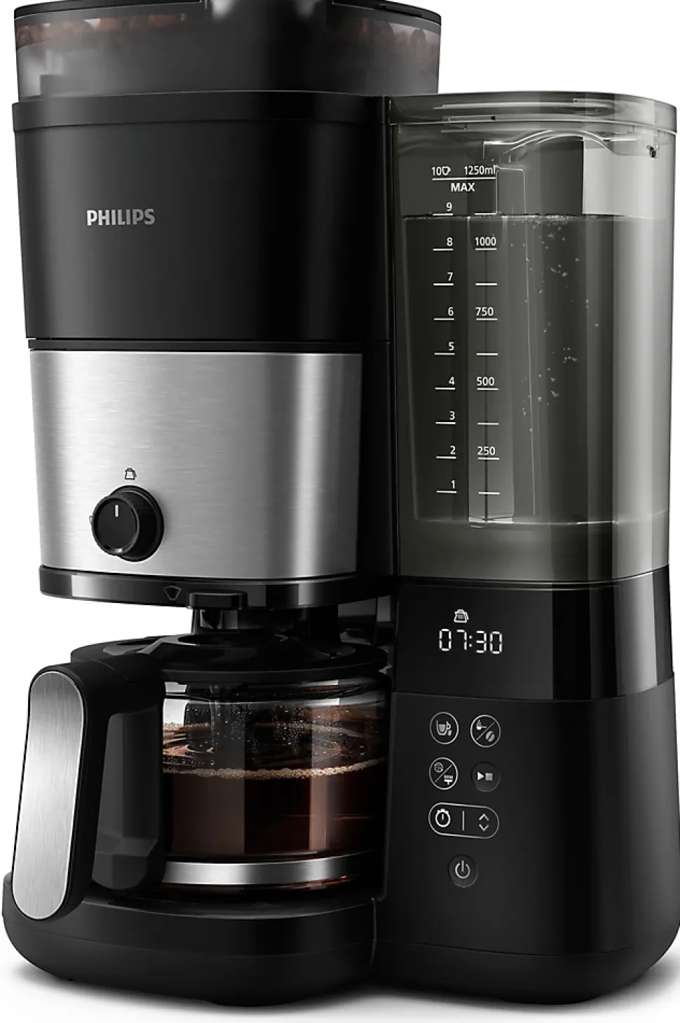 - Réservoir 1,25 L (jusqu’à 10 tasses) et design compact