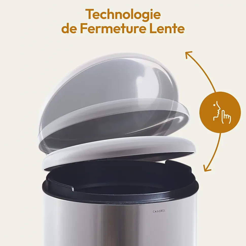 CASABEL Poubelle Cuisine 30L en Acier Inoxydable, Anti-Traces, Poubelle Ronde avec Pédale et Couvercle, Chrome