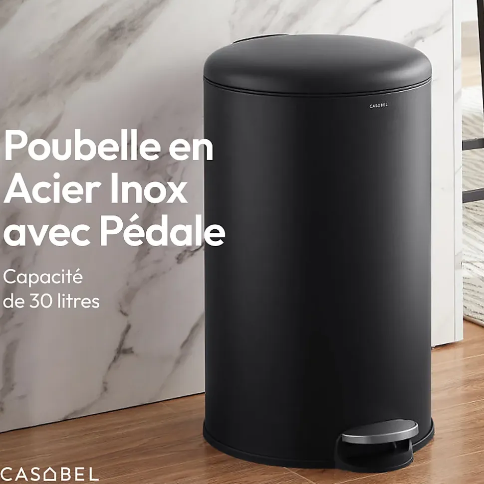 Cette poubelle de 30 L au design rond et compact offre une grande capacité, idéale pour les déchets quotidiens aussi bien en cuisine qu’au bureau. Conçue sans seau intérieur, elle dispose d’un anneau pratique pour maintenir le sac parfaitement en place, facilitant le nettoyage et l’utilisation au quotidien. Sa pédale robuste permet une ouverture hygiénique sans les mains, tandis que le couvercle à fermeture douce assure un usage silencieux et discret. Fabriquée en acier inoxydable brossé anti-traces, elle conserve une apparence propre et élégante même en cas d’utilisation intensive, y compris dans la salle de bain. Une poignée intégrée à l’arrière permet de la déplacer facilement et sans effort lors du ménage.