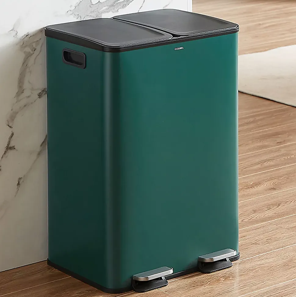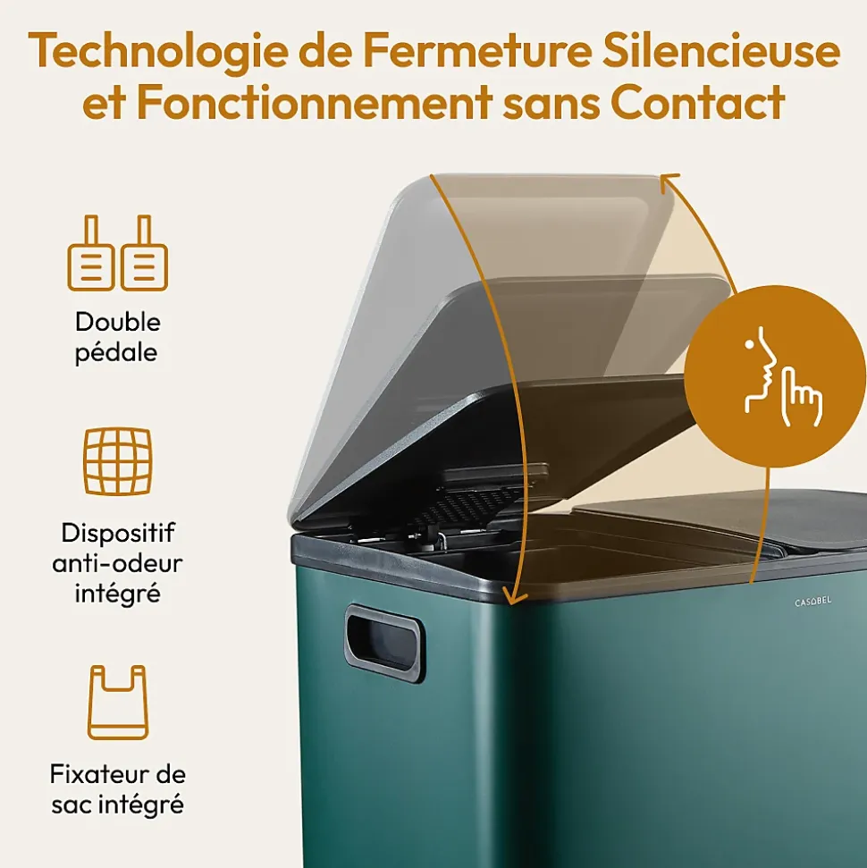 - Poubelle tri selectif 2 compartiments avec couvercles silencieux et pédale résistante. Ouverture sans contact, idéale pour une utilisation hygiénique en cuisine, Poubelle de bureau, Poubelle recyclage.