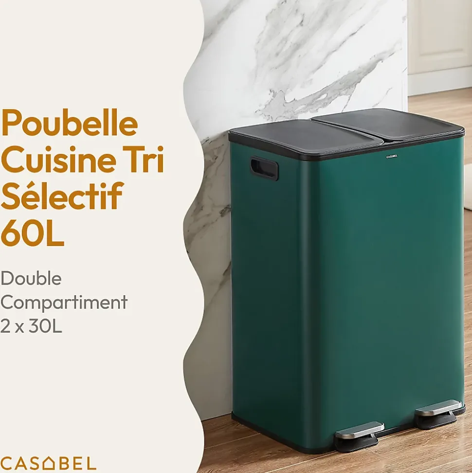 - Poubelle cuisine tri sélectif 60L avec 2 bacs de 30L chacun. Idéale pour les familles, optimise l’espace dans les endroits ou elle est installee. Pratique et robuste. Poubelle 30l.
