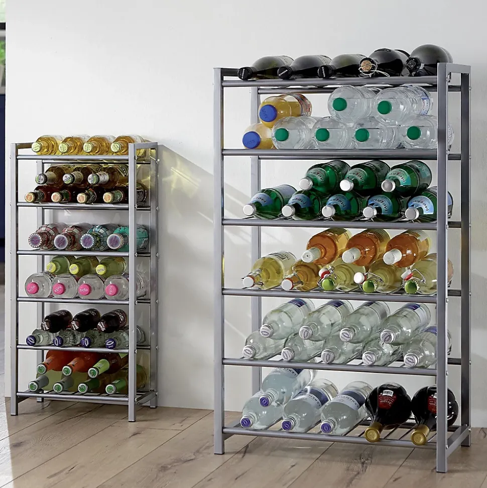 Caractéristiques produit : Casier à bouteilles en tube d’acier laqué coloris aluminium. 6 niveaux pour environ 42 bouteilles de 0,5 l. Poids maximum supporté : 45 kg. A monter soi même. Dimensions produit : Longueur 34 cm x largeur 22 cm x Hauteur 72 cm – Poids net : 3,42 kg. Dimensions colis : Colis n°1 : Longueur 24 cm x largeur 75 cm x Hauteur 10,5 cm – Poids brut : 3,8 kg.
