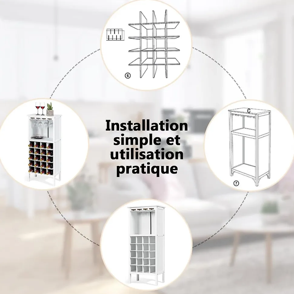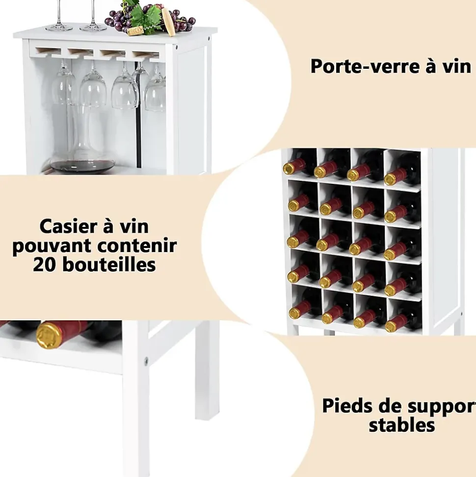 Grande capacité : Ce casier à vin, avec 5 tablettes de rangement divisée en 4 compartiments pour chaque étage, contient au maximum 20 bouteilles de vin d’un volume de 750 ml. En plus de la zone de stockage du vin en bas, le dessus du casier avec un porte-gobelet ajoute une fonctionnalité supplémentaire.