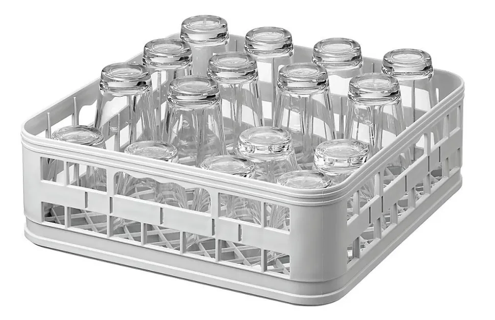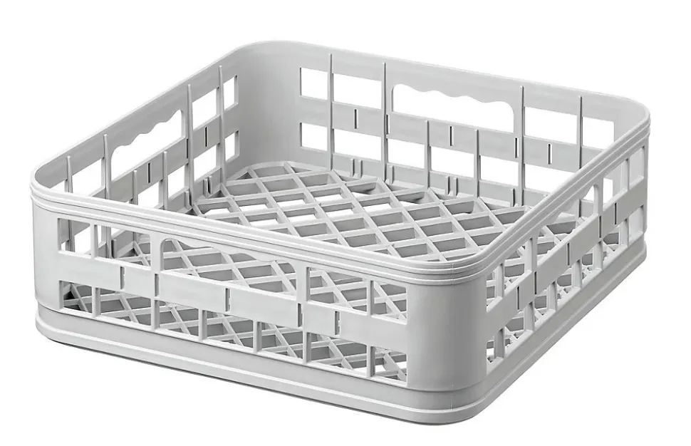 Casier de lavage Bartscher Casier de lavage à verres pour lave verre professionnel à fond plat. Robuste et fonctionnel.Hauteur intérieure : 103 mmEmpilable : oui Taille du panier : 350 x 350 mm Nombre de compartiments : 1 Couleur : Gris Modèle : Plat Convient à Verres /Tasses Matériau : Plastique Largeur : 350 mmProfondeur : 350 mmHauteur : 110 mmPoids : 0.8 kg