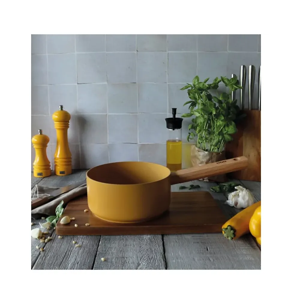Casserole 18cm jaune Ogo – Casserole Ector 7930271 d’Ogo.La gamme Ector s’inspire de la nature forte et contrastée des forêts nordiques. Son nom révèle la robustesse et la solidité des produits et reflète également l’aspect brut de cette gamme. Cette collection propose un contraste entre le chêne massif et les différents coloris. Authentique, de qualité, au design moderne et sobre. Formes droites élégantes et uniques. En aluminium forgé de 3.5 mm pour une cuisson parfaitement homogène et une grande résistante. Poignée en chêne massif finition brute. Revêtement intérieur antiadhésif en céramique. Revêtement certifié Greblon 3 couches. Fond triple épaisseur. Lavage à la main. Tous feux dont induction. – Type de produit : Casserole.Collection : Ector.Matière : Aluminium.Diamètre : 18 cm.Revêtu : Oui.Induction : Oui.Poignée amovible : Non.Lavage à la main.Tous feux dont induction.Fond triple épaisseur.Poignée en chêne massif finition brute.Revêtement intérieur antiadhésif en céramique.Dimensions : L 35,5cm x l 18,5cm x H 8,5cm.Couleur : Jaune.
