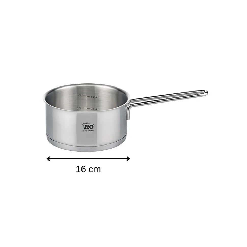 - DESCRIPTION : Elo vous propose cette casserole de cuisine à long manche de 16cm de diamètre pour cuire vos pâtes, vos œufs, ou faire fondre du chocolat au bain-marie