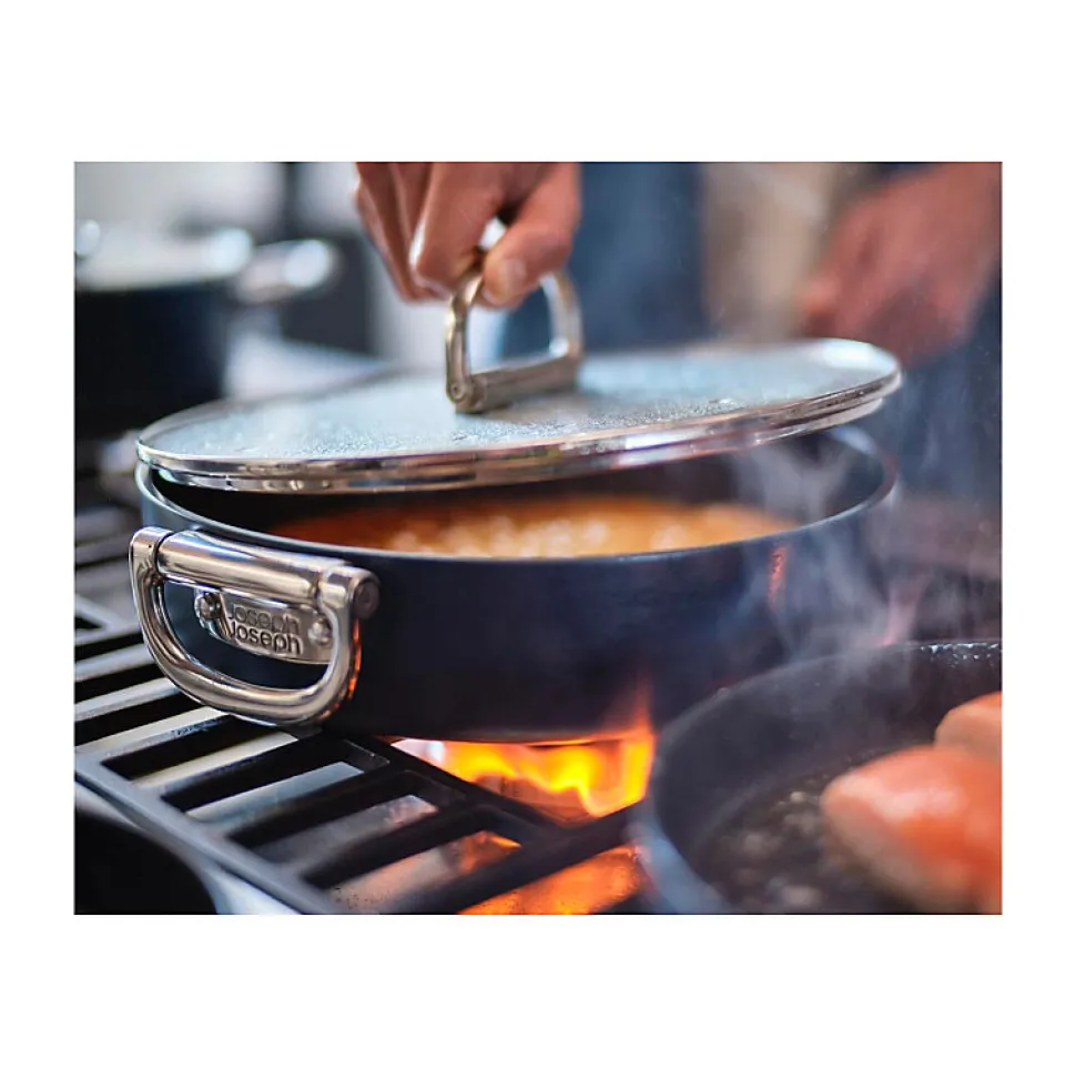 Design révolutionnaire pour gain de placeLa sauteuse Joseph Joseph Space 28 cm intègre des poignées rabattables brevetées SwingLock™, une innovation qui réduit l’encombrement de 50% lors du rangement. Son mécanisme robuste testé pour 20 ans d’utilisation assure une fixation sécurisée pendant la cuisson tout en optimisant l’espace dans vos placards.Performance professionnelle au quotidienAvec son corps en aluminium lourd à distribution thermique homogène, cette sauteuse élimine les points chauds pour des résultats de cuisson impeccables. Le revêtement antiadhésif en céramique sans PTFE, PFAS, PFOA, plomb ou cadmium garantit une utilisation saine jusqu’à 232°C (450°F) au four.Polyvalence et praticitéCompatible avec tous types de feux (induction incluse) et dotée d’un couvercle en verre trempé rabattable, cette sauteuse passe facilement de la cuisinière au four. Son manche auxiliaire rabattable offre une prise ergonomique pour un service sans effort.Entretien simplifiéLe revêtement céramique haute résistance permet un nettoyage rapide au lave-vaisselle, bien qu’un lavage manuel soit recommandé pour préserver ses performances. La finition Midnight Blue élégante résiste aux rayures pour un maintien de l’esthétique dans le temps.Joseph Joseph est une marque britannique réputée depuis 2003, spécialisée dans les solutions culinaires innovantes alliant design intelligent et fonctionnalité premium. Ses produits primés répondent aux besoins des cuisiniers modernes soucieux d’optimisation spatiale.Poignées SwingLock™ rabattables (gain de 50% d’espace)Revêtement céramique sain sans produits toxiquesCorps en aluminium professionnel compatible inductionCouvercle en verre trempé avec poignée rabattableGarantie de durabilité avec mécanisme testé 20 ans