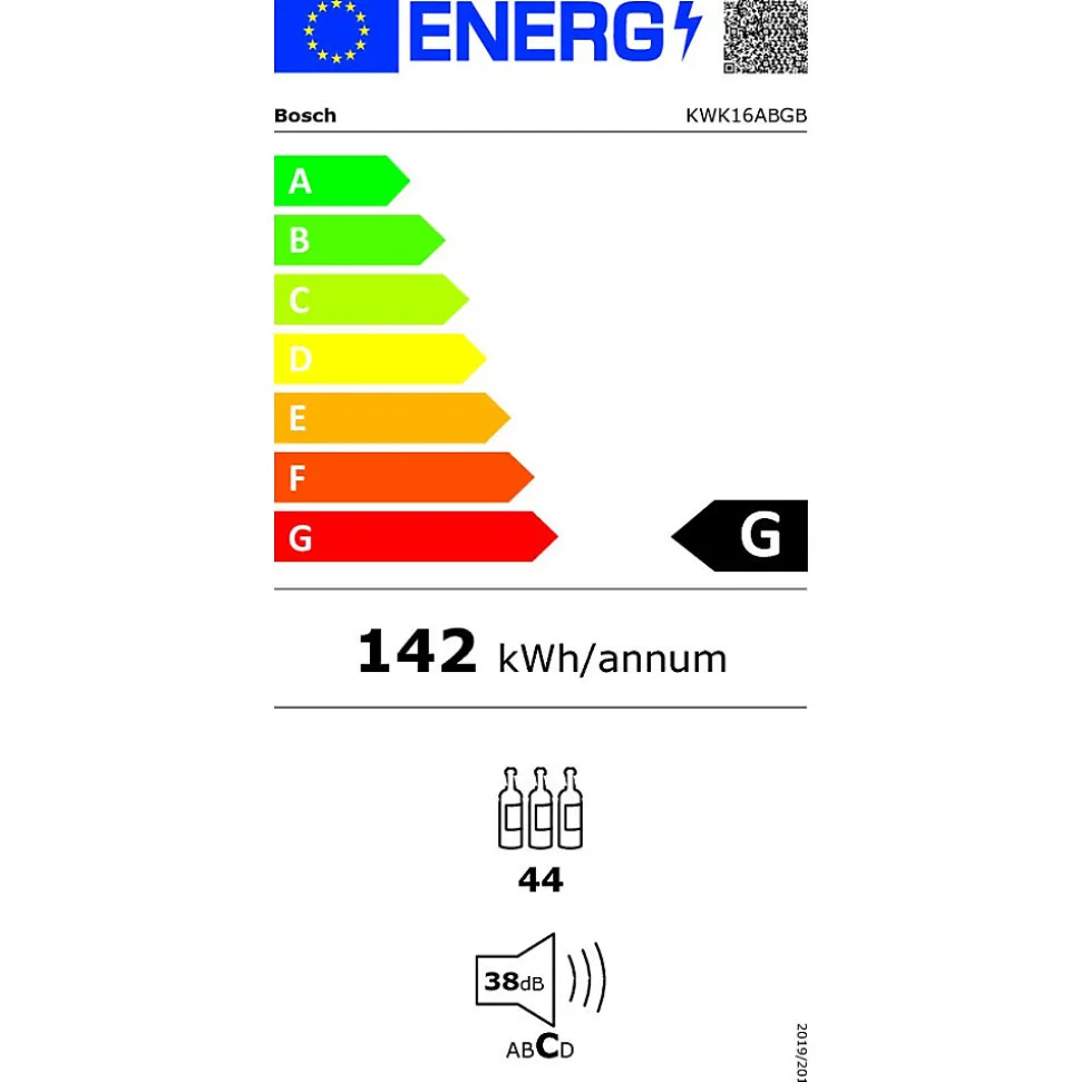 Cave à vin 44 bouteilles double zone noir Bosch – Cave à vin double zone Série 6 Bosch KWK16ABGB avec porte en verre. Éclairage LED avec mode présentation : un éclairage idéal pour votre cave à vin. Clayettes en chêne avec rails télescopiques : vos vins à l’abri des chocs et vibrations. Charnière interchangeable : ouvrez la porte de votre cave à vin du côté que vous souhaitez. Serrure de porte : soyez assuré que vos vins sont stockés en toute sécurité. – Type de produit : Cave à vin.Volume total : 120 L.Zone de température réglable : 2Entrée et sortie d’air par le socle.Porte verre.Réfrigération dynamique par ventilateur.Ouverture de la porte jusqu’a 115° pour une sortie totale des tiroirs.Alarme visuelle et sonore de porte ouverte.Appareil fermant à clé: Oui.Classe climatique : SN-ST.Charnières à droite, réversibles.Classe d’efficacité énergétique : G.Consommation énergétique annuelle moyenne : 150 kWh/an.Capacité en nombre de bouteilles de 75 cl : 44.Niveau sonore : 38 dB(A) re 1 pW.Classe de niveau sonore : C.Type de construction : Pose-libre.Porte habillable : livré sans façade.Puissance de raccordement : 60 W.Intensité : 6 A.Ventilateur dans la cave à vin : Oui.Tension : 220-240 V.Fréquence : 50-60 Hz.Longueur du cordon électrique : 230.0 cm.Type de prise : Fiche cont.terre/Gard.fil ter.Nombre de compresseurs : 1.Nombre de circuit de froid : 2.Porte réversible : Oui.Interrupteur d’éclairage intérieur : non.Couleur : Noir.Hauteur : 818 mm.Largeur appareil : 600 mm.Profondeur appareil : 593 mm.Poids net : 42.4 kg.