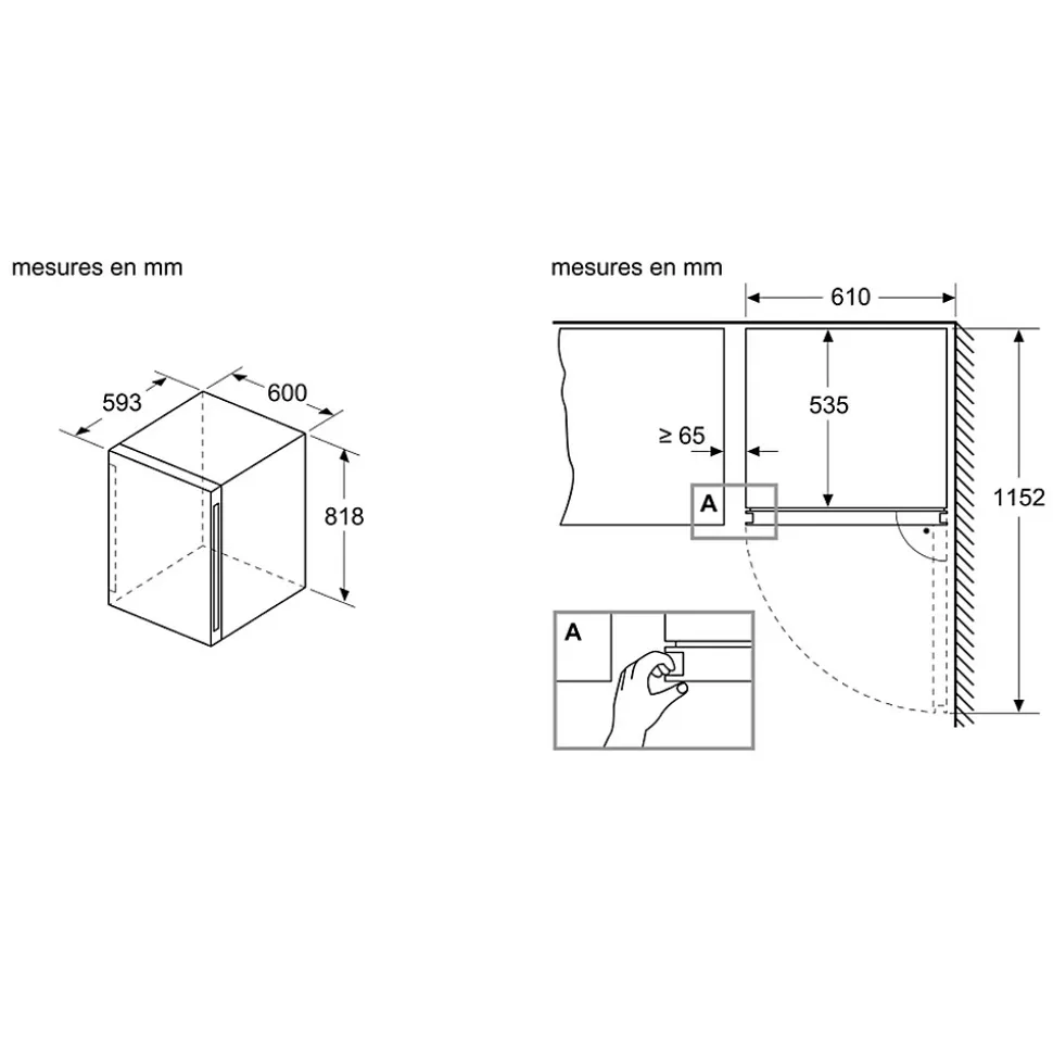 - Alarme porte ouverte et ouverture de porte jusqu’à 115° pour extraction totale des tiroirs.