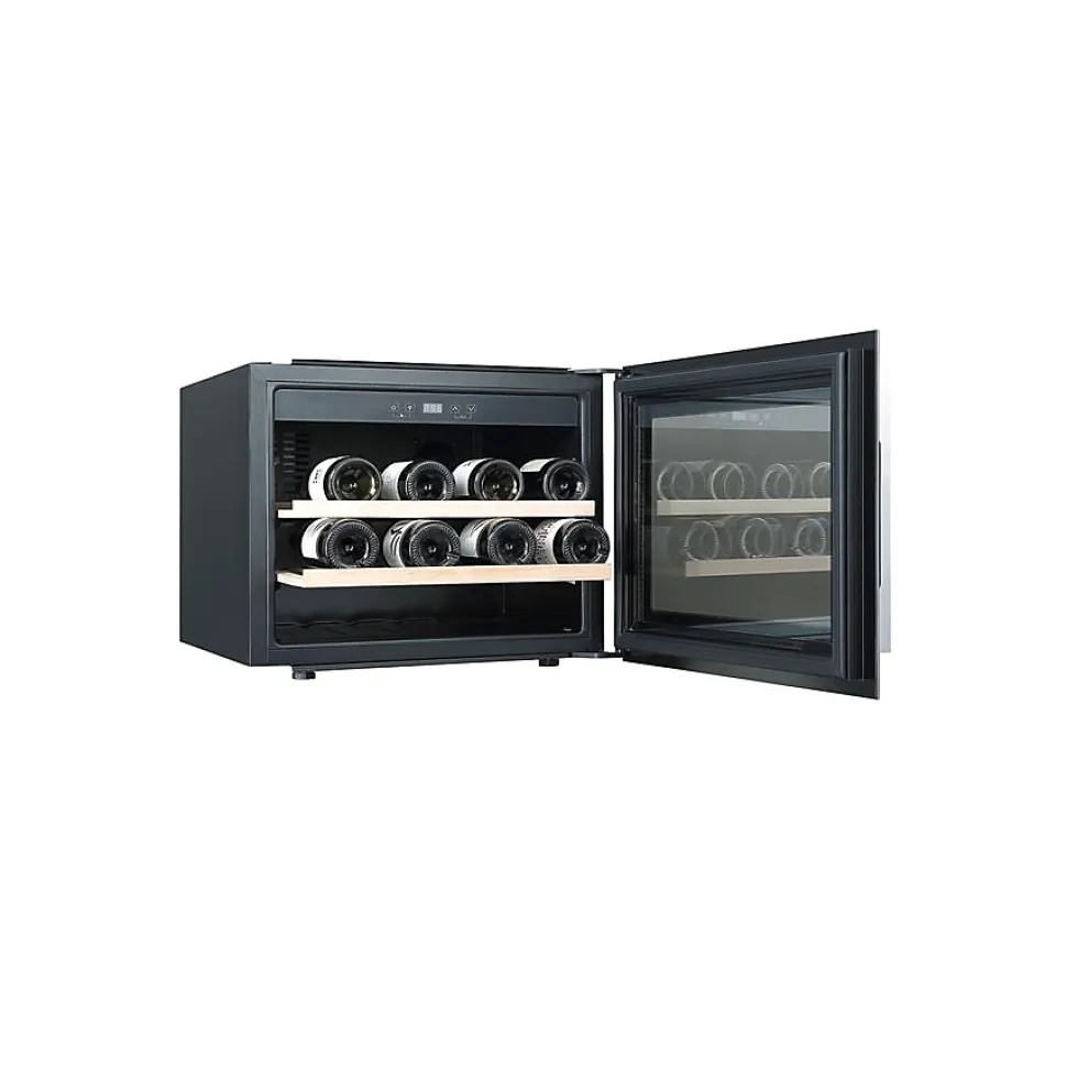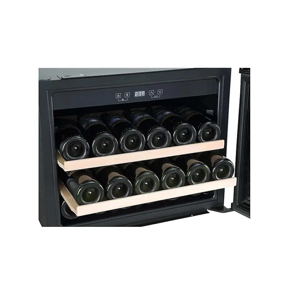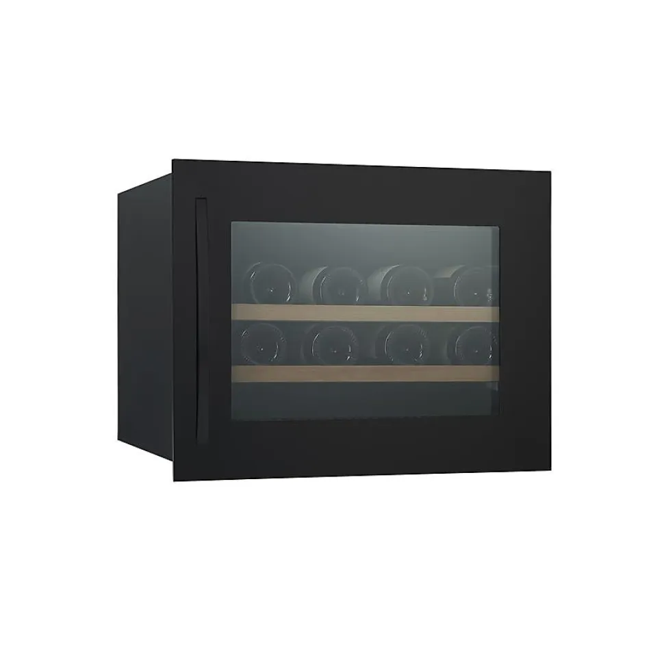 Cave à vin encastrable sous plan 23 bouteilles Caviss – Cave à vin encastrable SLEN123TBE4 de Caviss avec température réglables de 5 à 20°C. Gestion électronique des températures avec affichage LED. Porte noire réversible avec verre traité anti-UV. – Type de produit : Cave à vin encastrable.Capacité : 23 bouteilles.Type de cave : Cave de service.Volume utile : 66 L.Affichage T° : oui.Niveau sonore : 40 dB.Conso élec. : 135 kWh / an.Classe climatique : SN-ST.Label énergie : G.Catégorie sonore : C.Type de froid : Froid ventilé.Nombre de zone : 1 zone.Porte réversible, ouverture droite.Cadre de la porte : vitrée noire.Porte double vitrage traité anti-UV.Poignée externe noire.Contrôle électronique avec affichage blanc.Réglage température : +5°C +20°C.Éclairage LED blanches.2 clayettes bois fronton bois.Fonction : verrouillage automatique du bandeau de commande.Système anti-vibration.Dimensions Niche (LxHxP) : 56 x 45 x 55 cm.Hauteur de niche : 45 cm.Poids net : 26,5 Kg.