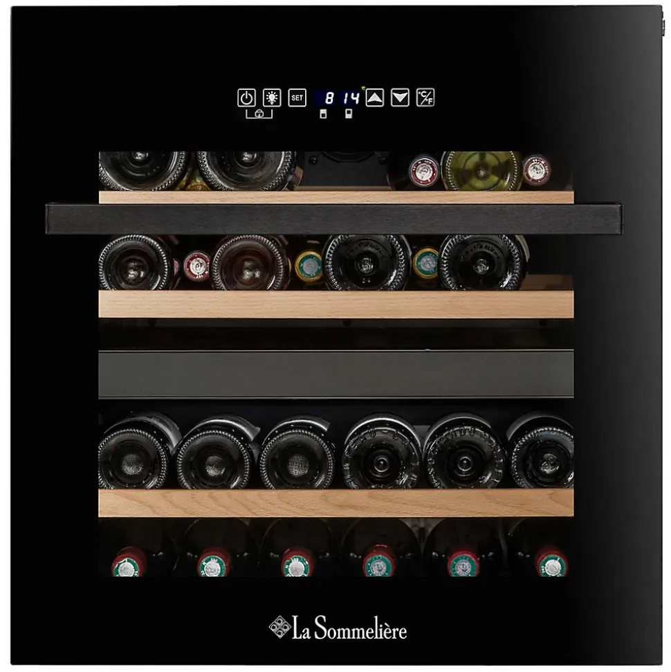 Cave à vin intégrable 36 bouteilles noir La Sommelière – Cave à vin intégrable La Sommelière LSBI36DBZ associe design et élégance. Encastrable en colonne, la LSBI36BDZ s’intègre en toute élégance dans votre cuisine et toute facilité grâce à son format standard niche four. Protégées par une porte en verre trempée, traitée anti-UV, vos bouteilles sont visibles et sublimées grâce à un éclairage intérieur LED. Au dégré près : Mettez à température de dégustation vos vins pour profiter pleinement de tous leurs arômes. Grâce à ses 2 zones de température avec réglage indépendant, vous pouvez mettre à température de dégustation plusieurs types de vin dans une même cave. Panneau de contrôle extérieur digital pour une utilisation plus intuitive et éviter des mouvements de température non désirés à l’intérieur de la cave (vs réglage intérieur). Stockage optimisé : Conservez vos vins sur ses clayettes en bois naturel , ergonomiques elles sont spécialement conçues pour accueillir vos bouteilles de vins type Bordeaux 75 cl) , amovibles elles s’adaptent à vos besoins. – Type de produit : Cave à vin intégré.Construction : Encastrable.Type de cave : Service.IEE : 169.Classe d’efficacité énergétique : G.Nombre de bouteilles stockées : 36.Conso. d’énergie annuelle (kWh/an) : 140.Volume total net (L) : 85.Emissions de bruit acoustique dans l’air (dB(A)) : 37.Classe d’émission de bruit acoustique dans l’air : C.Classe climatique : SN-ST. Cet appareil est conçu pour être utilisé à une température ambiante comprise entre 10°C et 38°C.Réglage hiver : Non.Mode de dégivrage : Automatique.Type de source lumineuse : LED.Type de froid : Brassé.Connecté : Non.Gestion de la température : Multi-température.Régulation de la T°C : Electronique.Nbre zone(s) de températures : 1.Température réglable : Oui.T°C interne min. (°C) : 5.T°C interne max. (°C) : 20.Système anti-vibrations :