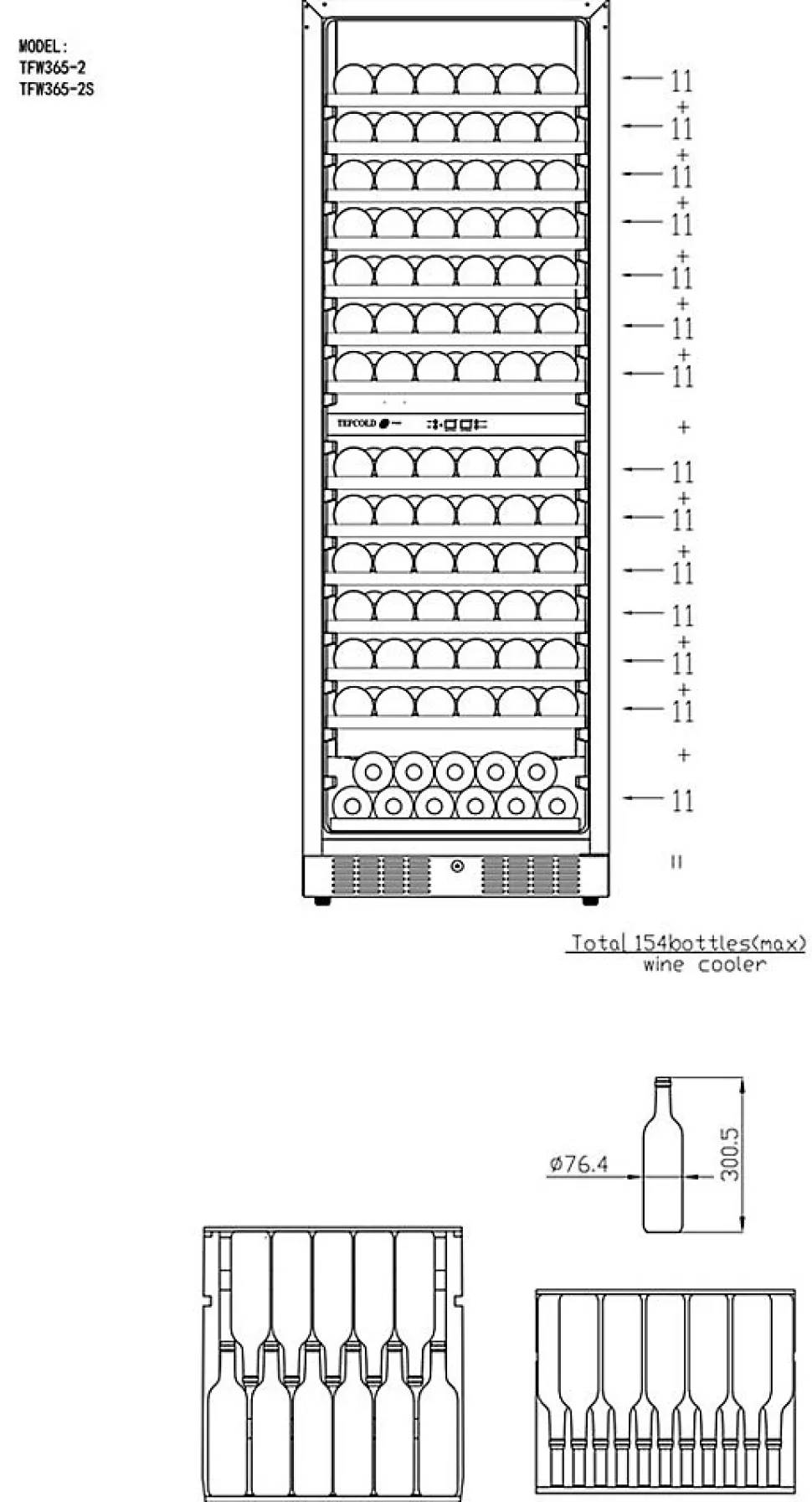 Cave à vin professionnelle réfrigérée dotée de deux zones de températures. Capacité : 154 bouteilles de vin de 750 mlPorte vitrée sans cadrePoignée incurvée en acier inoxydable2 zones de températureTablettes en boisPorte réversiblePorte vitrée teintée pour protéger le vinÉclairage intérieur LEDPlage de la température : 5 à 10°C / 10 à 18°CVolume net : 350 litresNombre de tablettes : 14 étagères à vin en bois4 pieds ajustablesFinition intérieure : ABS noirEclairage intérieur LEDDimensions intérieures : L 510 x P 540 x H 1500 mmDimensions avec emballage : L 650 x P 760 x H 2000 mm