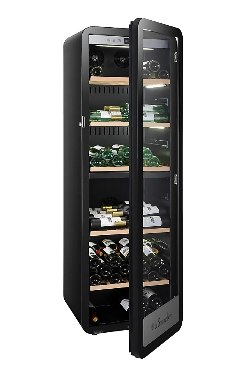 Cave de vieillissement et de mise à température double zone modèle APOGEE DZ Cave de vieillissement et de mise à température double zone modèle APOGEE DZ La cave à vin APOGEEDZ La Sommelière est la solution parfaite pour les professionnels ou les amateurs de vin cherchant à optimiser la conservation et la mise à température de leurs bouteilles. Grâce à sa conception élégante et moderne, elle s’intègre parfaitement dans tout type de décoration intérieure et est idéale pour les collectionneurs, les restaurateurs, les passionnés, les cavistes.Installation : Pose libre avec un cadre de porte noir élégantSystème de Froid : Compresseur avec un froid brassé pour une circulation optimale de l’airRégulation : Électronique avec thermomètre digital à affichage blancÉclairage : LED blanc pour mettre en valeur vos bouteillesHygrométrie Régulée : Naturelle grâce au principe de l’hygrodynamieSécurité : Porte vitrée avec serrure et triple vitrage gris anti-UVFabriquée avec des fluides (R600a), ne contenant ni CFC ni HFC.Silencieuse : Niveau sonore de seulement 38 dB.Important : Cette cave à vin est non encastrable. La garantie ne s’applique pas si la cave à vin est positionnée sous plan. Noir – l55.5- L0.1- P58- h177