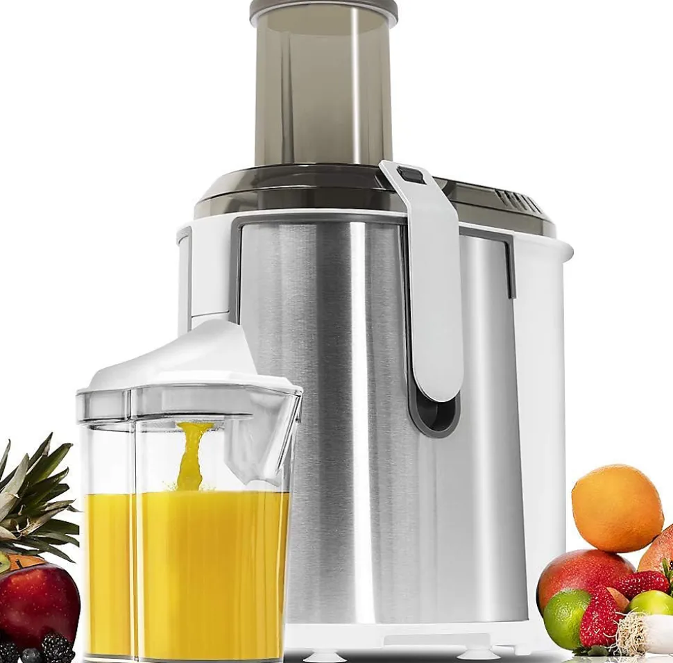 Cette centrifugeuse puissante de 1300 W permet d’extraire facilement le jus de fruits et légumes entiers grâce à son canal d’entrée XXL de 75 mm. Le disque en acier avec revêtement titane assure une durabilité maximale et maintient les lames affûtées plus longtemps. Avec sa vitesse de 17 000 tr/min, elle optimise l’extraction des vitamines et du jus, tout en réduisant le gaspillage. Le réservoir à pulpe intégré de 2 L et le bol de 950 ml facilitent la préparation et le service. Son design compact, le bec anti-gouttes et l’espace de rangement pour câble garantissent une utilisation pratique et sûre au quotidien.