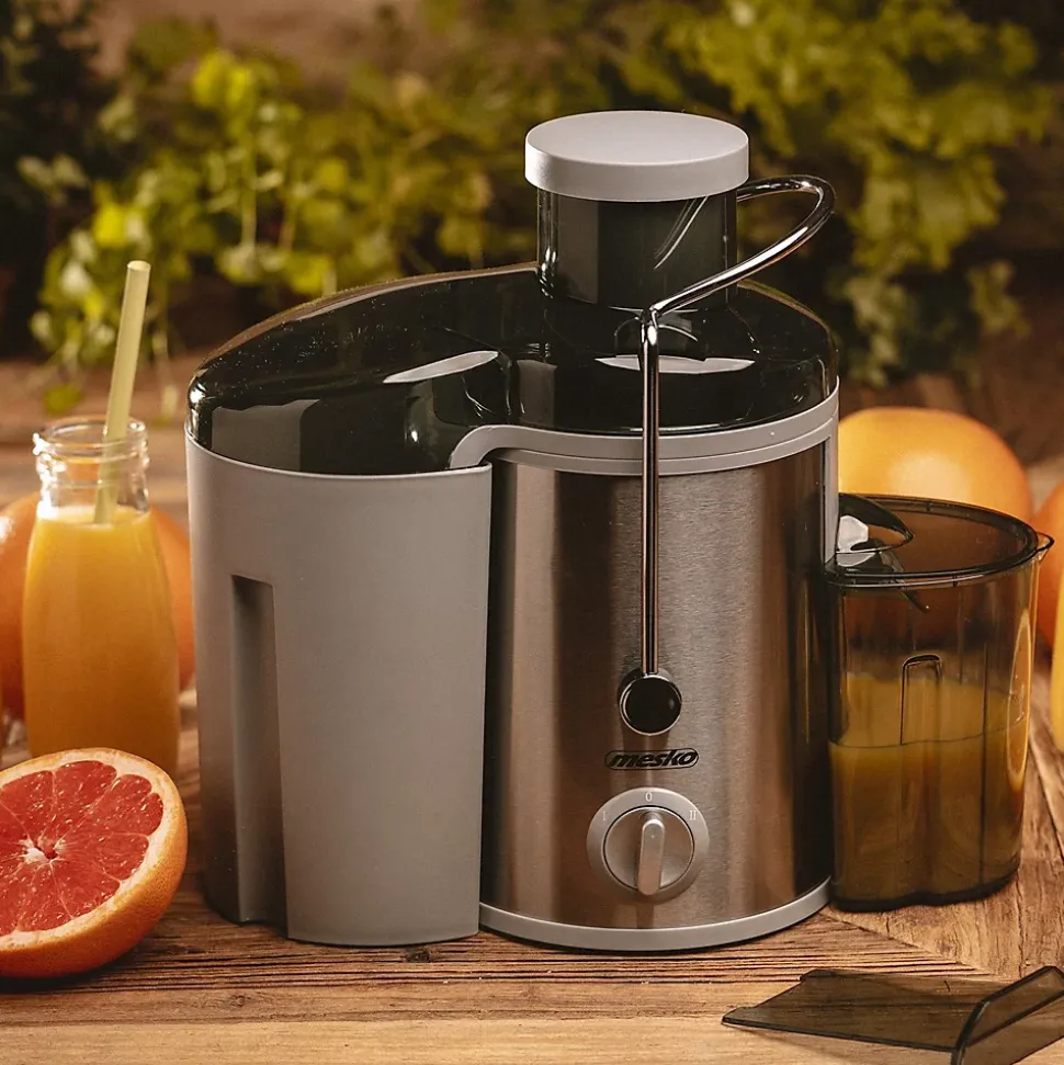 L’extracteur de jus fonctionnel et compact d’une puissance de 600 W vous permet de préparer des jus de fruits et de légumes, contribuant ainsi à prendre soin de la santé des utilisateurs. Le filtrage s’effectue à travers une fine passoire en acier inoxydable qui retient les solides. De cette façon, seul le jus contenant le plus de vitamines va dans le récipient inclus dans le set. La pulpe et les graines restantes sont séparées dans un deuxième récipient de 1,5 L. Le récipient à jus d’une capacité de 0,45 L est équipé d’un couvercle qui empêche les éclaboussures incontrôlées du jus. Grâce au verrou de sécurité, il est impossible d’allumer un appareil mal monté. Le presse-agrumes MS 4126 vous permet de préparer très rapidement des jus de fruits et légumes d’un diamètre allant jusqu’à 65 mm, les plus gros doivent être coupés avant d’être insérés dans le distributeur.Caractéristiques techniques :- Puissance maximale 600 W- Puissance nominale 400 W- Fabriqué en acier inoxydable de la plus haute qualité- L ‘ouverture pour fruits et légumes entiers d’un diamètre de 65 mm- Presse instantanément des pommes entières, des carottes et d’autres fruits- Passoire fine en inox pour des jus veloutés- Évacuation des jus avec le DOUBLE SYSTEM- L ‘ensemble comprend un récipient à jus (0,45 L)- Récipient à pulpe d’une capacité de 1,5L- interrupteur à 3 voies- Verrouiller contre le démarrage d’un appareil mal assemblé- Base antidérapante stable – ventouses- Nettoyage rapide et facile – va au lave-vaisselle- Haute durabilité- Couleur grise…