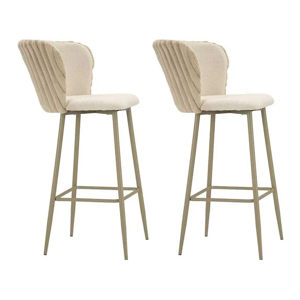 Aspect : Matériau principal = Contreplaqué • Matériaux secondaires = Eponge Métal Polyester • Autres dimensions : Hauteur d’assise = 77 • Hauteur repose pieds = 27 • Dimensions : Hauteur (en cm) = 106 • Longueur (en cm) = 58 • Profondeur (en cm) = 55 • Autres caractéristiques : A monter = Oui • Composition = Lot de 2 chaises de bar • Poids (en kg) = 5 • Chaise de bar en tissu et métal Alaska (Lot de 2)