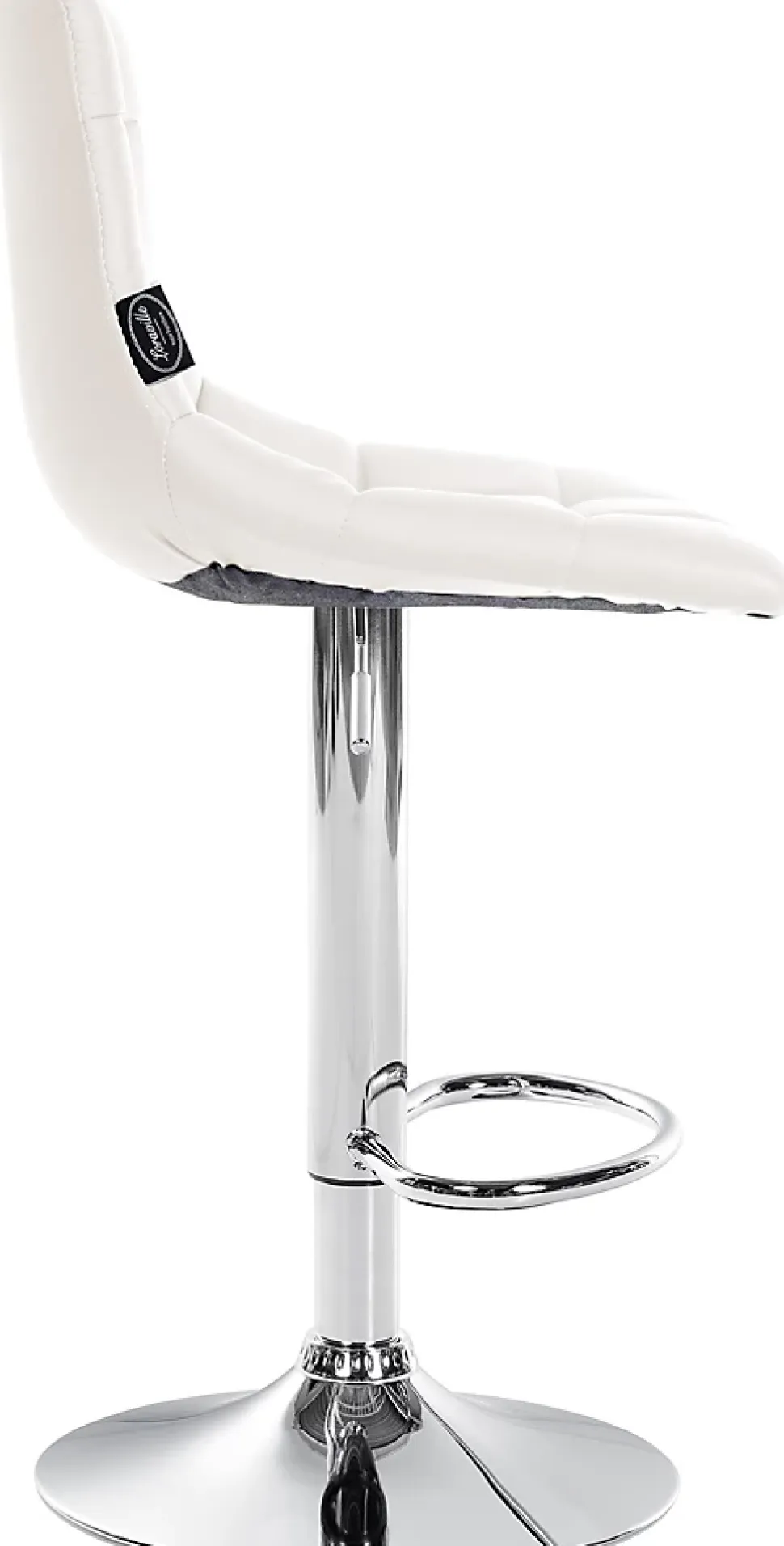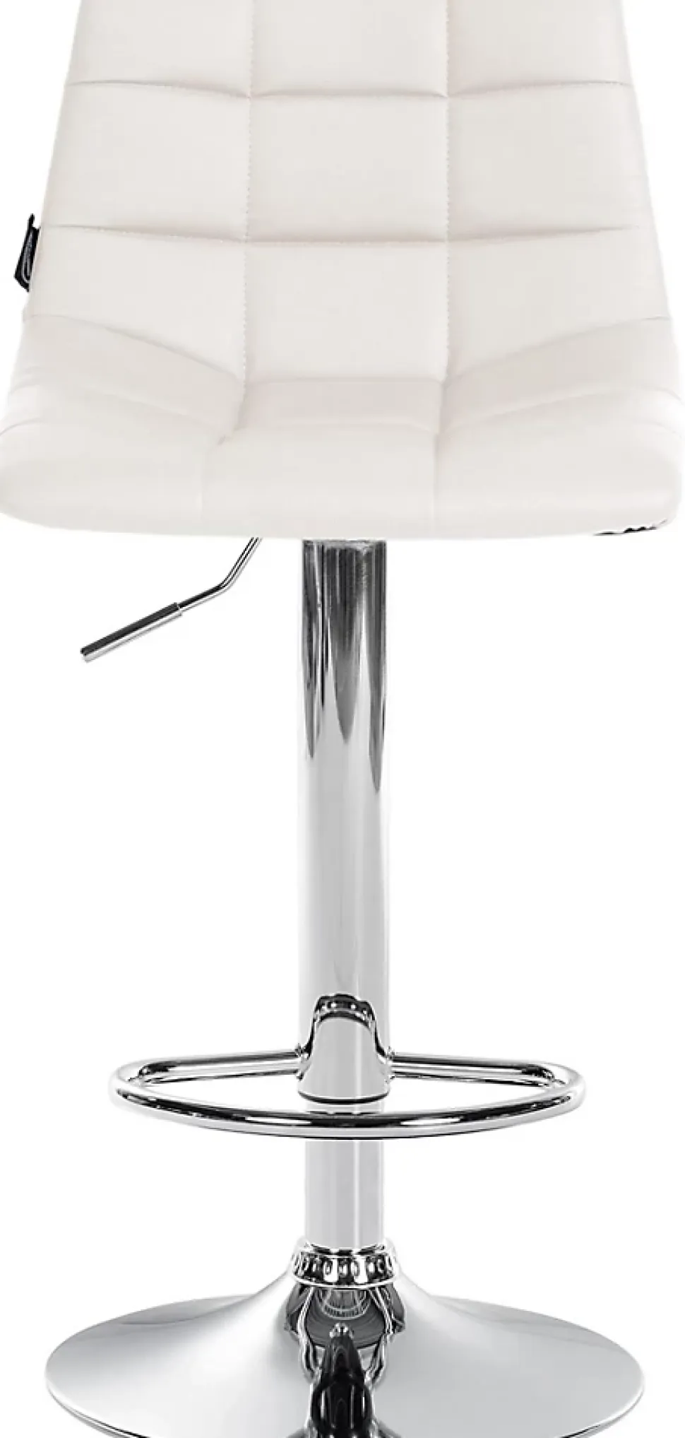 Tabouret de bar Jerry en similicuirÉlégant et stylé, le tabouret de bar Jerry en similicuir se distingue par son pied trompette réglable et son repose-pied correspondant, qui garantissent une assise confortable. La hauteur du tabouret peut être facilement et rapidement ajustée à vos besoins, afin qu’il s’adapte parfaitement à votre table ou à votre comptoir. Le tabouret de bar peut également pivoter à 360°, ce qui vous permet de vous déplacer librement.Le revêtement du tabouret est en similicuir souple et est doté d’un motif piqué classique. L’aspect élégant et intemporel du tabouret de bar est souligné par le revêtement en similicuir disponible en différentes couleurs. La solide structure métallique du tabouret est disponible en chrome ou en noir et assure une grande stabilité et une longue durée de vie. Le design minimaliste et moderne du tabouret s’intègre parfaitement dans tout intérieur.Composition du matériau: 100% PolyuréthaneCa. Dimensions:Hauteur totale : 87 – 108,5 cmLargeur totale : 43 cmProfondeur totale : 46,5 cmHauteur d’assise : 62,5 – 84 cmSurface d’assise (l x p) : 43 x 34,5 cmHauteur du dossier : 27,5 cmMax. Capacité de charge : 120 kgPoids : 6,5 kgAssise:Revêtement avec coutures décorativesPosition d’assise agréable grâce au dossierAssise confortablement rembourréePiétement:Matériau : métal noir ou chroméPied trompette stableSolideParticularités :Un look moderne allié à un grand confortUne assise confortable même après plusieurs heuresUn revêtement facile d’entretienConseils d’entretien :Essuyer les salissures légères avec un chiffon en coton humideNe passer l’aspirateur sur les surfaces qu’avec un accessoire appropriéNe pas utiliser de produits de nettoyage domestiques