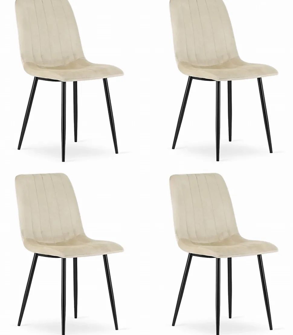 L’ensemble de 4 chaises VALORA JEWA allie élégance et ergonomie, idéal pour le salon, le bureau, la chambre ou la salle à manger. Confectionnées en velours beige et dotées de pieds en métal noir, elles offrent confort, durabilité et facilité de montage.- Lot de 4 chaises JEWA – Design intemporel et excellente ergonomie – Idéales pour le salon, le bureau, la chambre ou la salle à manger – Disponibles en beige – Fonctionnalité, confort et durabilité – Hauteur de l’assise : 90 cm – Largeur de l’assise : 43 cm – Profondeur de l’assise : 51 cm – Hauteur d’assise : 48,5 cm – Largeur d’assise : 43 cm – Profondeur d’assise : 38,5 cm – Revêtement de l’assise : velours – Pieds : métal noir – Charge maximale : 120 kg – Poids net par chaise : 4,2 kg – Montage facile – Dimensions de l’emballage : 63 x 46 x 69 cm – Poids brut : 20 kg – Dimensions totales du colis pour l’expédition internationale : 84 x 56 cm x 56 cm