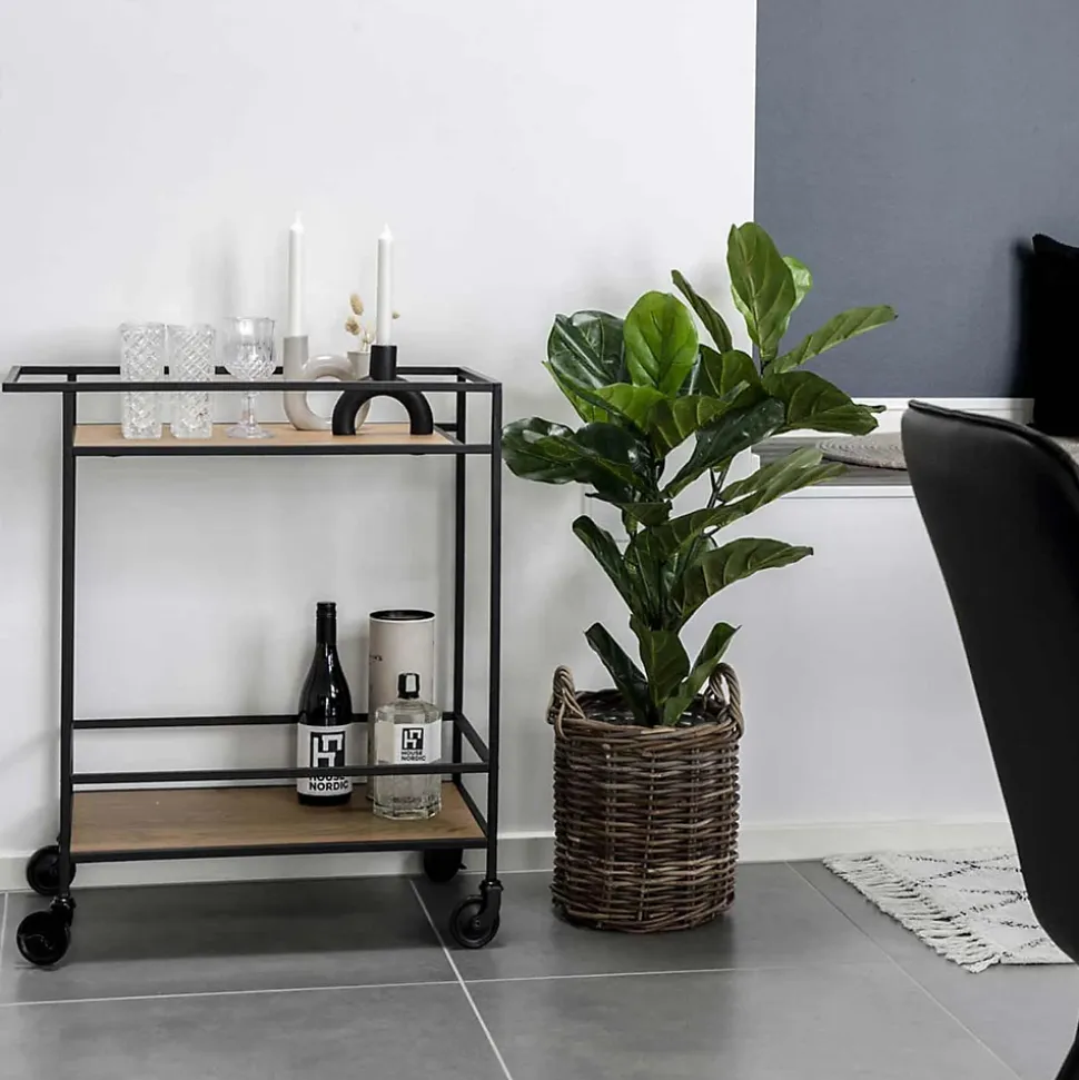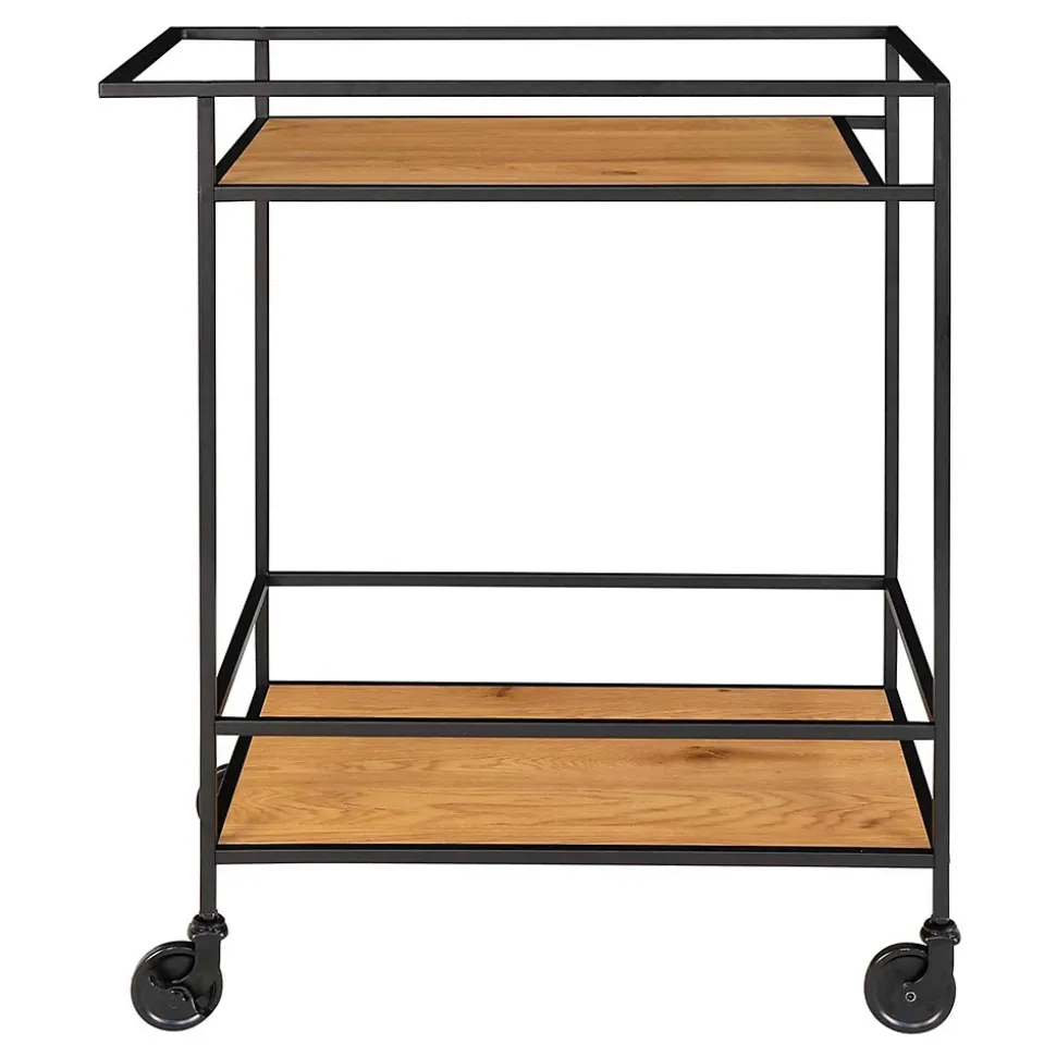 Desserte de bar avec 2 étagères, aspect chêne, structure noire