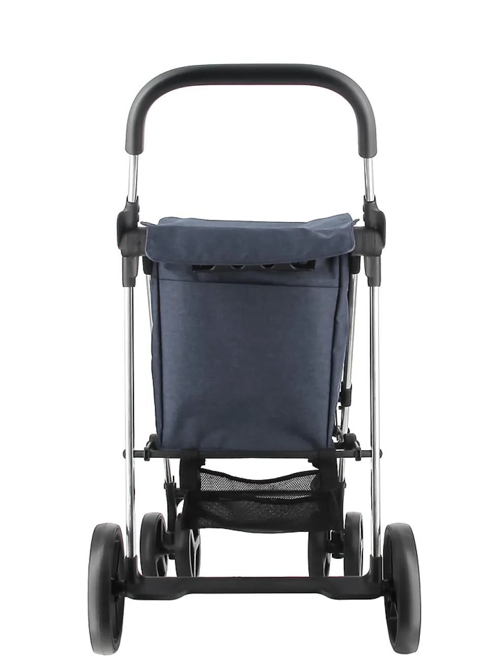 - Chariot type poussette bébé, extrêmement stable et maniable grâce à ses 4 roues dont 2 pivotantes