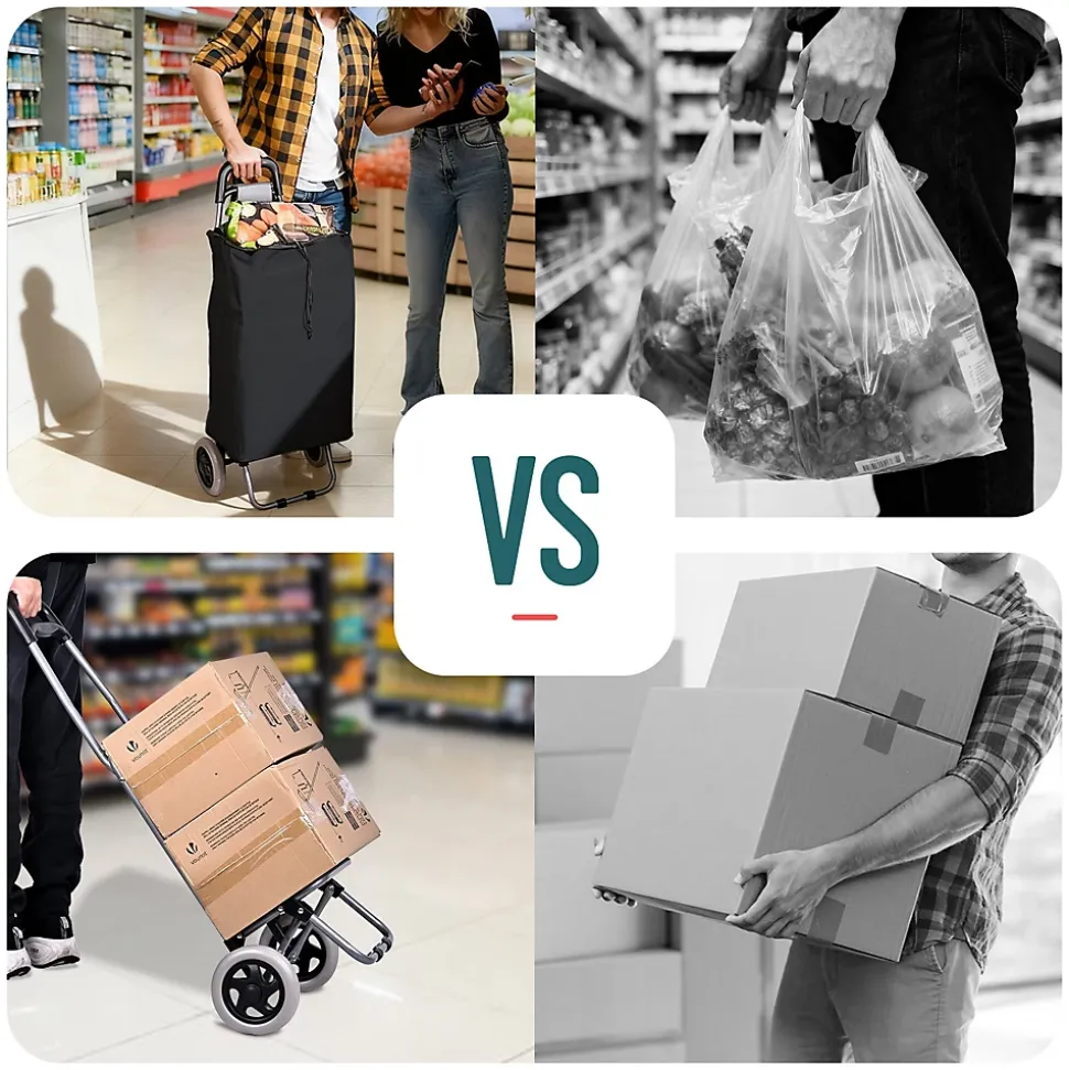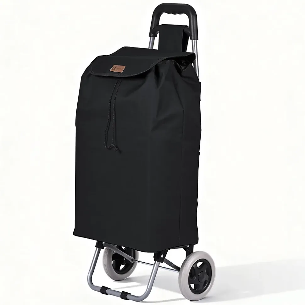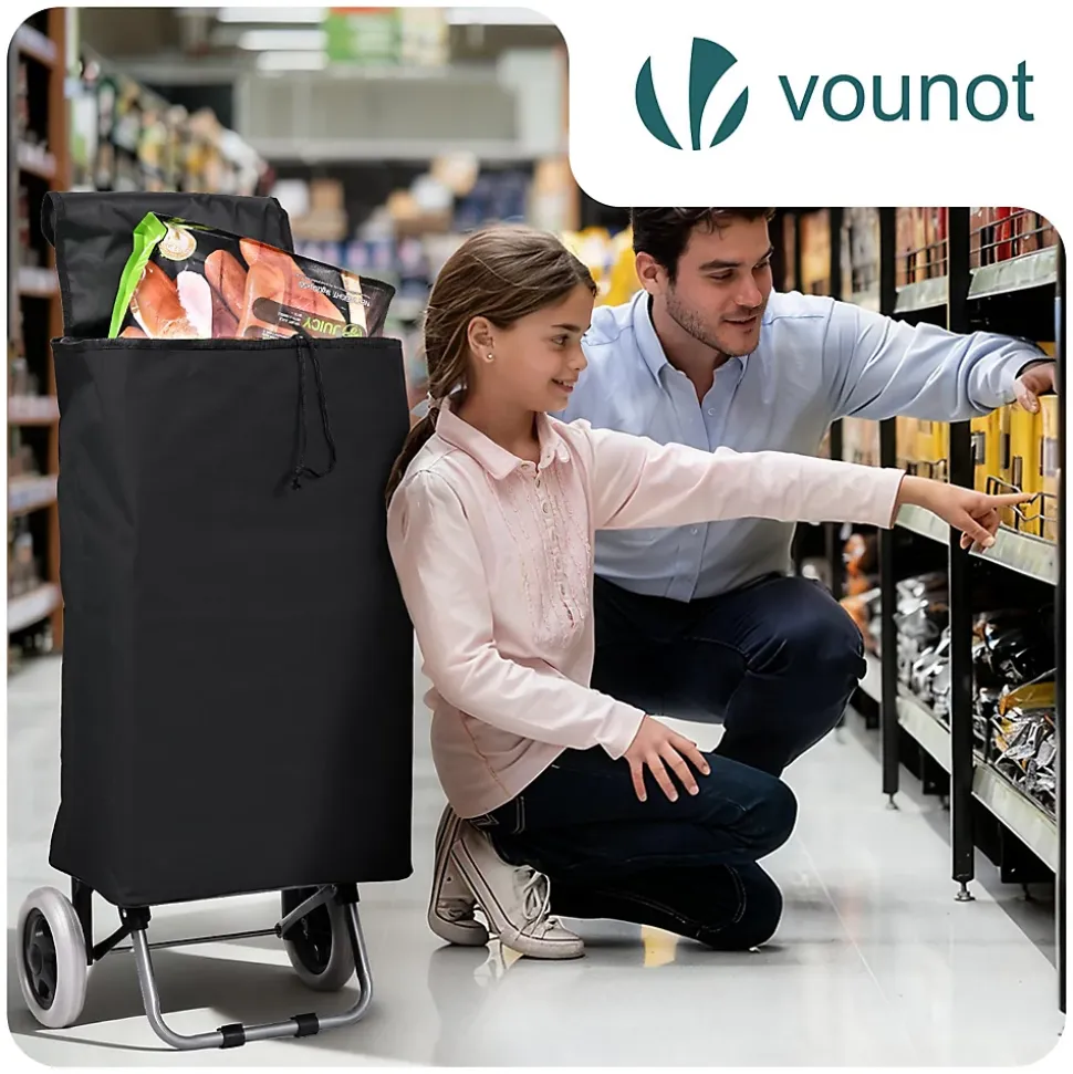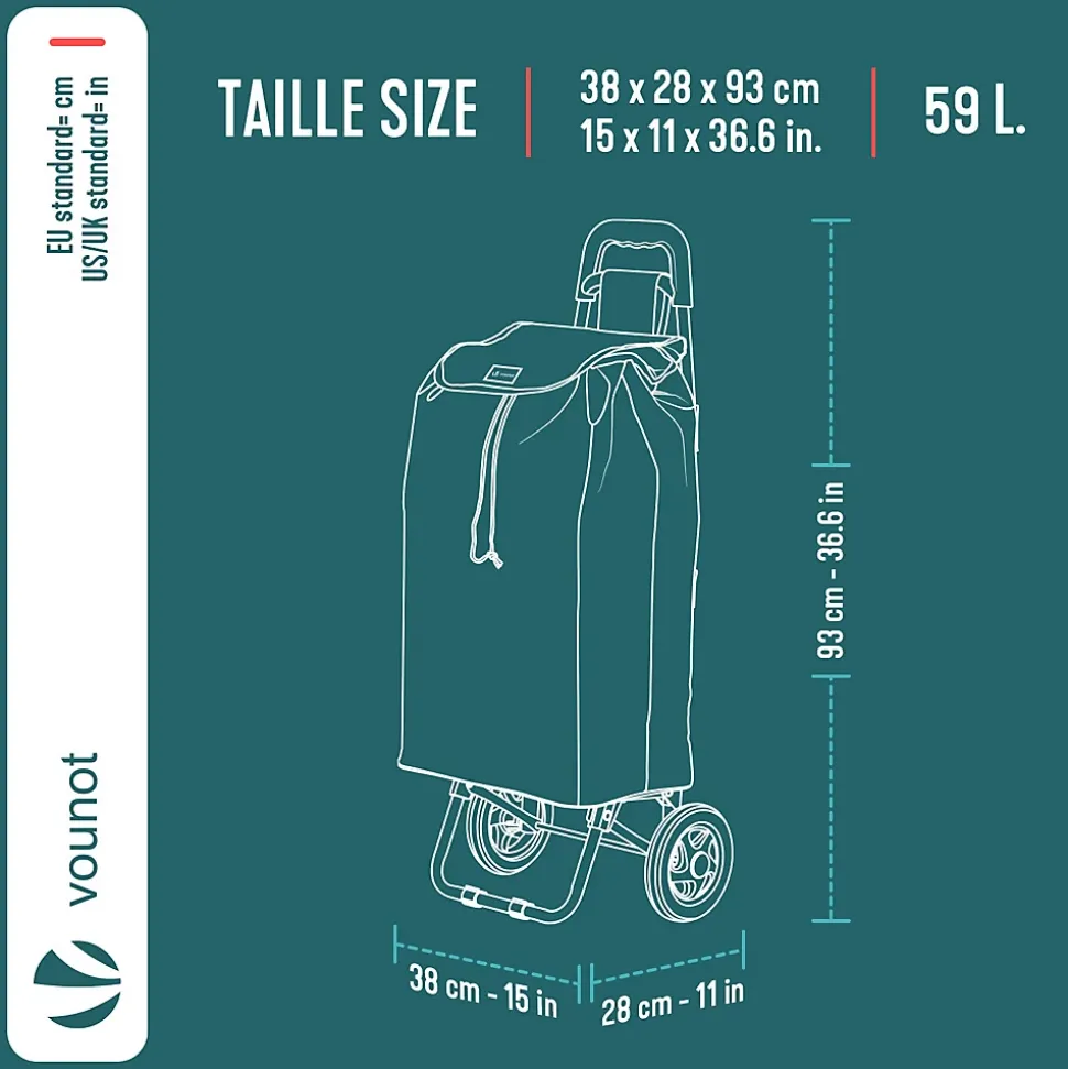 LES + PRODUITS Grande capacité Cadre en métal robuste Roues silencieuses et fluides Utilisation 2 en 1 DESCRIPTION Ce chariot de courses dispose d’un grand volume de 59 L, pratique pour les courses, les sorties au marché ou le transport d’objets du quotidien. La poche arrière zippée offre un rangement sûr et accessible pour téléphone, portefeuille, clés et petits essentiels. Sa structure en métal est à la fois légère et solide, pour une utilisation fiable au quotidien. Même bien chargé, le chariot reste stable et facile à manier. Le sac en tissu Oxford est résistant à la déchirure, conçu pour durer et se nettoie facilement après usage. Le système à 2 roues de ce caddie assure une conduite souple et stable sur les surfaces irrégulières comme les bosses, fissures ou trottoirs. Les roues résistantes limitent l’usure et roulent de manière discrète pour un confort d’utilisation au quotidien. Avec son sac, il fonctionne comme un chariot de courses classique. Sans le sac, le plateau rigide le transforme en diable, idéal pour empiler et déplacer facilement cartons, caisses, bouteilles d’eau et autres objets. Grâce à sa conception pliable et à son sac de rangement amovible, ce chariot se replie en quelques gestes. Une fois plié, il prend très peu de place et se range facilement dans un coin, un placard ou dans le coffre de la voiture, pratique quand on manque d’espace. CARACTÉRISTIQUE Matériau : Métal ; Oxford Dimensions : 38 x 28 x 93 cm Poids : 2kg Couleurs disponibles : Gris ; Noir ; Bleu marine