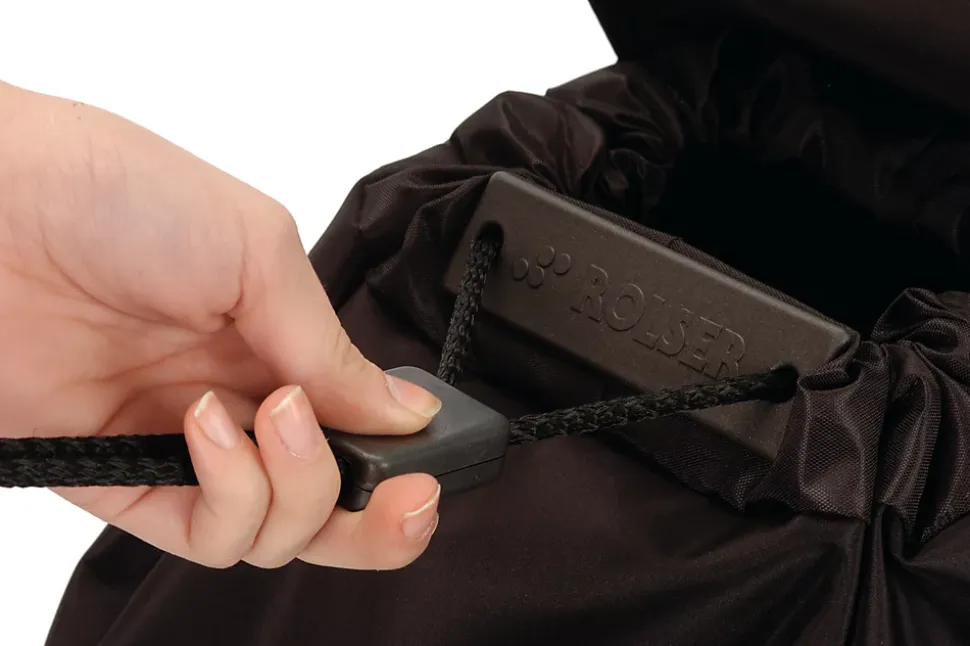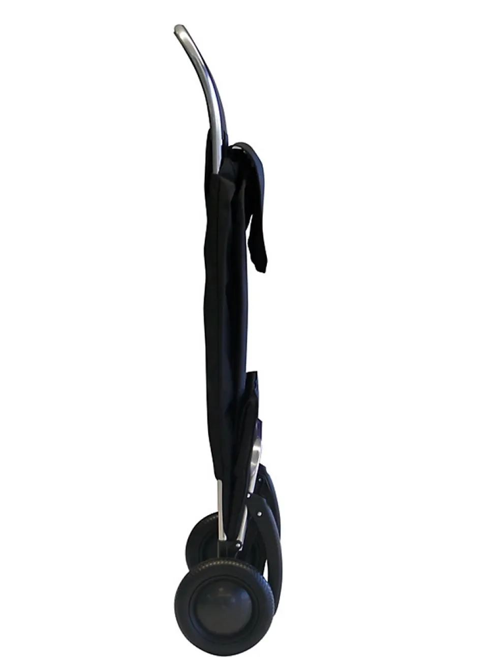 - dispose d’une attache pour fixer le chariot sur le caddy du supermarché ou suspendre des sacs additionnels