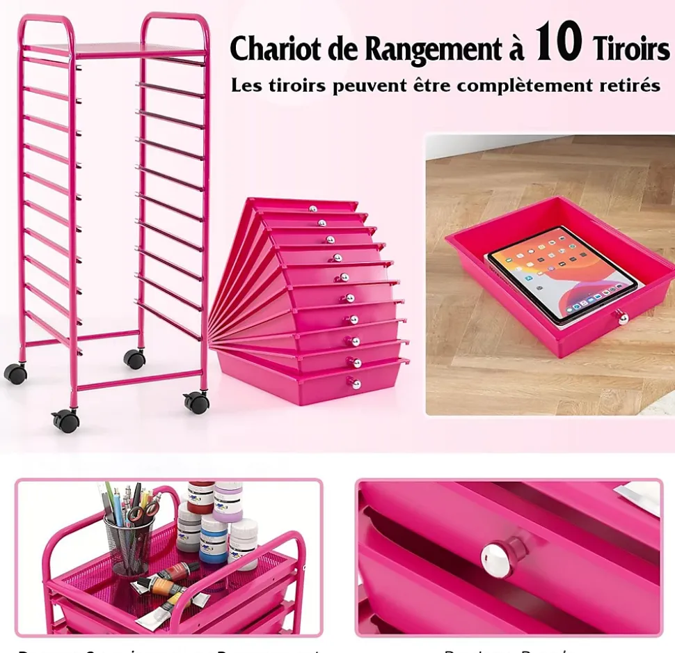 Je suis honoré de voir ce produit dans de nombreux produits. Nos véhicules de service sont fabriqués dans un matériau PP de haute qualité, robuste et durable, à la structure très raisonnable, avec un tiroir à 10 couches offrant un espace de stockage suffisant pour votre classification. La roue inférieure peut être pivotée à 360 degrés et la direction peut être contrôlée facilement. Deux des roues sont équipées de freins pour fixer la position à tout moment. N’hésitez pas, venez l’acheter! Rendez votre maison plus ordonnée !