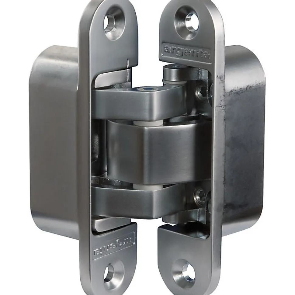 Charnière invisible chromé mat Gamme Small Pour porte de meuble Angle d’ouverture : 180 ° Longeur lame : 23 mm Hauteur total : 95 mm Vendu par 1