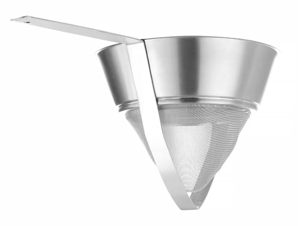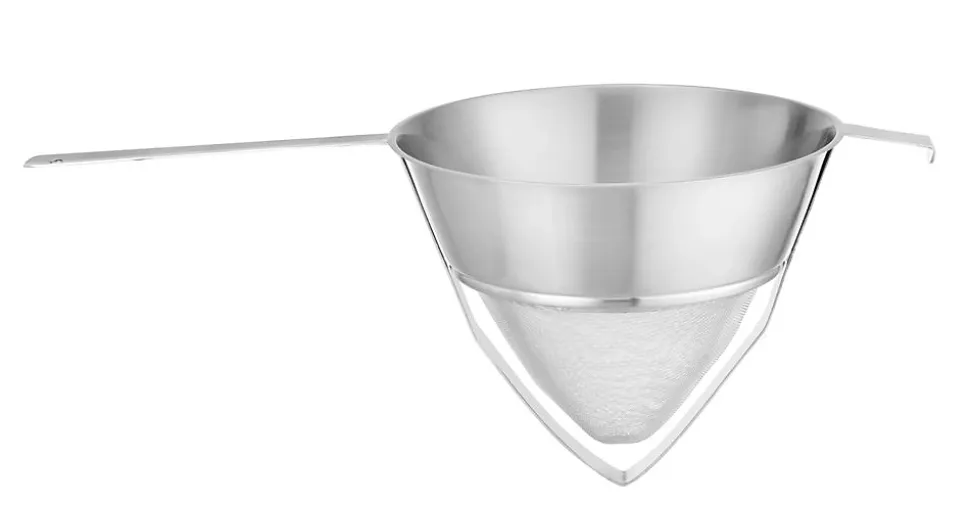 Le chinois conique à maille renforcée HENDI garantit l’absence de grumeaux dans les liquides et filtre parfaitement les produits finement moulus. Sa forme permet une utilisation propre et facile dans n’importe quel bol ou casserole. Entièrement en acier inoxydable satiné AISI 201.Maille très fine, renforcée.Poignée plate avec trou, renforcée.Muni d’une poignée de support supplémentaire.Bord évasé.Convient au lave-vaisselle. Le chinois conique à maille renforcée HENDI garantit l’absence de grumeaux dans les liquides et filtre parfaitement les produits finement moulus. Sa forme permet une utilisation propre et facile dans n’importe quel bol ou casserole. Renforcement assurant une longue durée de vie et une résistance à l’usure Forme conique – « entonnoir » permettant de s’adapter aux ustensiles de cuisine étroits et hauts. Garantie d’une texture veloutée idéale pour les plats liquides Filtrage précis de farine, de sucre en poudre et d’autres produits finement moulus