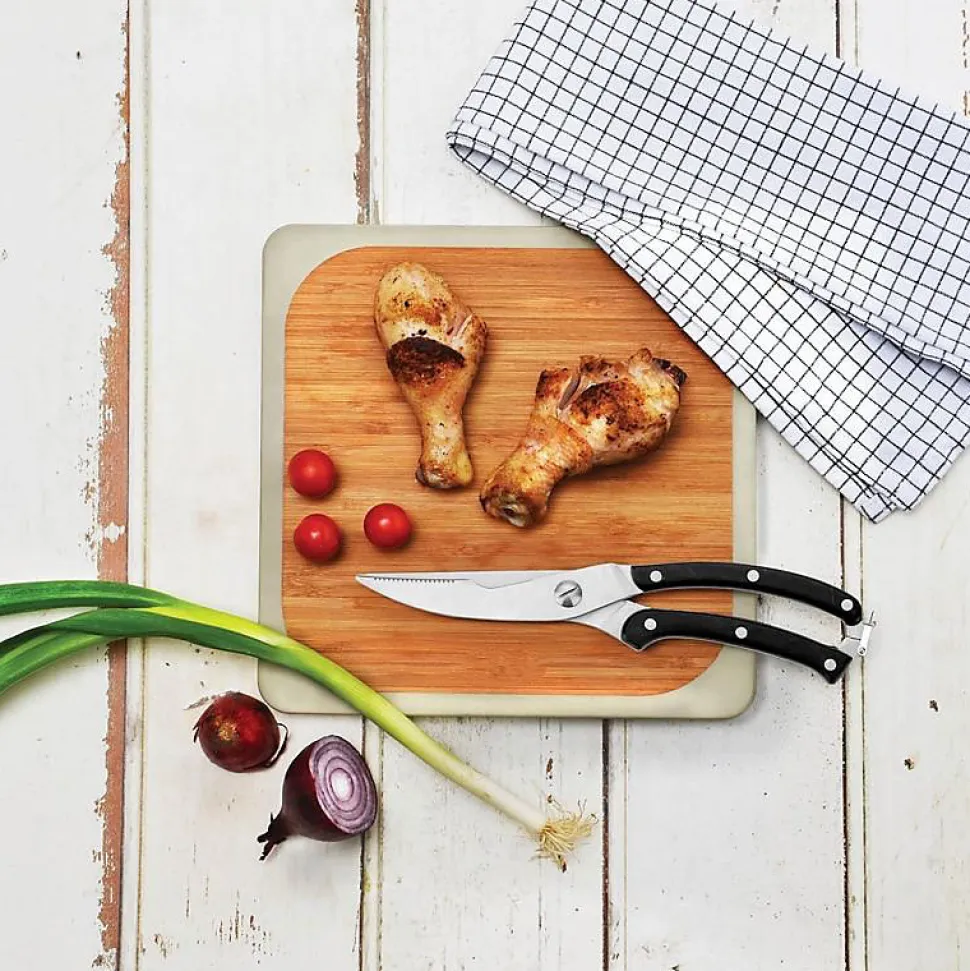Ciseaux à viande Royalty LinePréparez facilement votre prochain repas avec les ciseaux à viande robustes Royalty Line . La construction robuste et les poignées à ressort rendent ces ciseaux faciles à manipuler lorsque vous coupez tout, de la viande aux os.Ciseaux à viande multifonctionnels qui coupent facilement la viande, les coquilles ou les osConstruction robuste en acier inoxydable pour plus de durabilitéPoignée entièrement rivetée pour une plus grande stabilitéLes poignées à ressort rendent les cisailles faciles à utiliserMécanisme de verrouillage pour un stockage en toute sécuritéConstruction robuste en acier inoxydableLes cisailles à viande polyvalentes d’Oklahoma Joe sont dotées d’une construction en acier inoxydable durable pour couper facilement la viande, la coquille ou les os.Stabilité accrue et convivialitéPossède une poignée complète rivetée pour une plus grande stabilité et est à ressort, ce qui rend les ciseaux faciles à utiliser. (Le manche entièrement continu signifie que la lame s’étend dans le manche).Loquets pour un stockage et une manipulation en toute sécuritéLorsque vous n’utilisez pas les ciseaux, l’extrémité du manche est dotée d’un mécanisme de verrouillage pour un rangement et une manipulation en toute sécurité.PAS SEULEMENT POUR LE POULETCes ciseaux de cuisine magnifiquement conçus sont probablement l’accessoire le plus polyvalent que vous aurez dans votre cuisine. Vous serez surpris de la fréquence à laquelle vous les utiliserez et pas seulement pour découper un poulet entier. Comme un couteau suisse : plus vous les utilisez, plus vous découvrez à quel point ils sont polyvalents.QUELQUES FAÇONS D’UTILISER VOS CISEAUX DE CUISINE AUXQUELLES VOUS N’AVEZ PAS ENCORE PENSÉLes ciseaux coupent la pizza en une fraction du temps nécessaire à votre roulette à pizza.Coupez vos herbes directement dans votre plat.