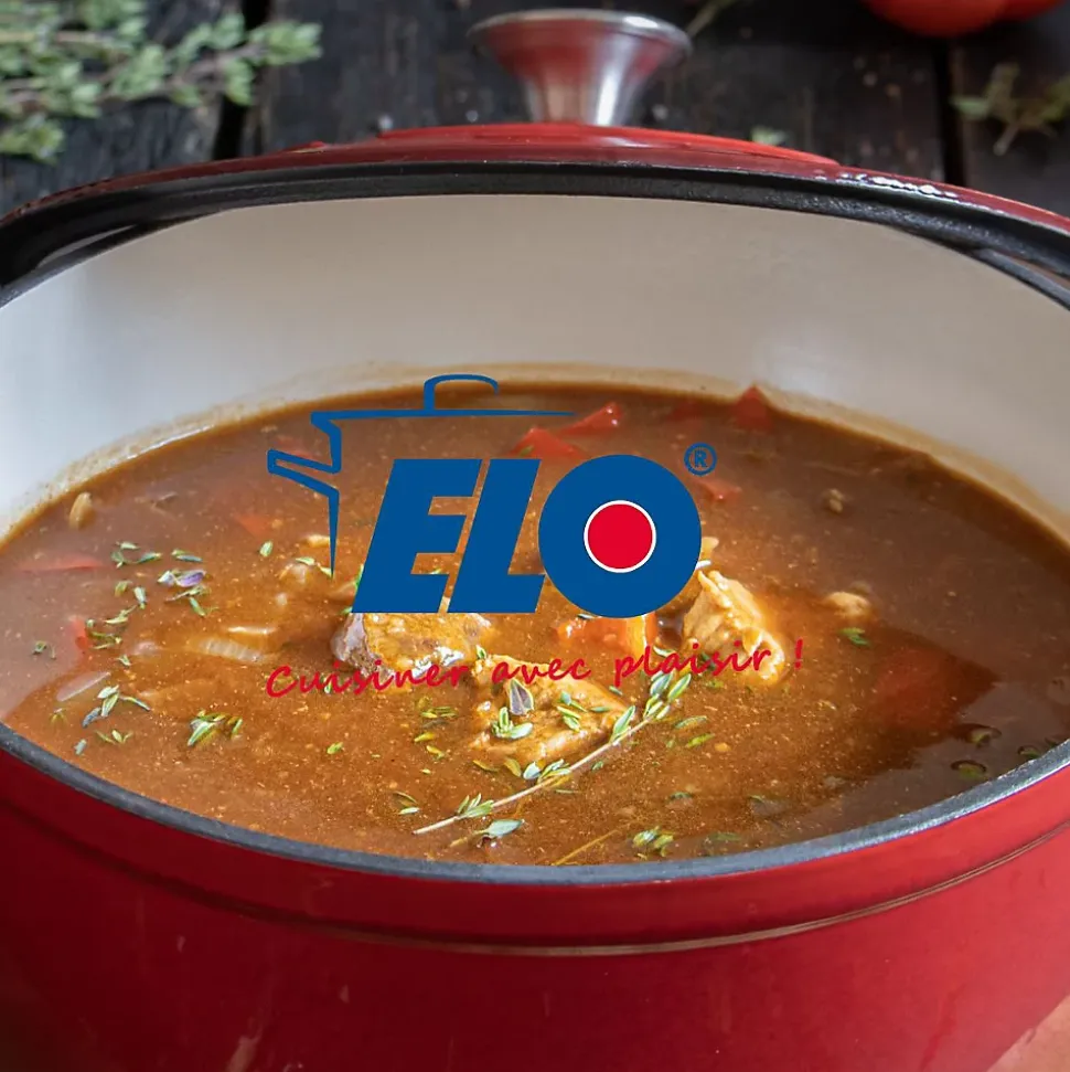- DESCRIPTION : La cocotte en fonte émaillée rouge cerise de 26 cm et 4,5 L d’Elo est idéale pour la cuisson de ragoûts, de plats mijotés, de rôtis et même de pains ; elle allie qualité de l’artisanat traditionnel et fonctionnalité moderne