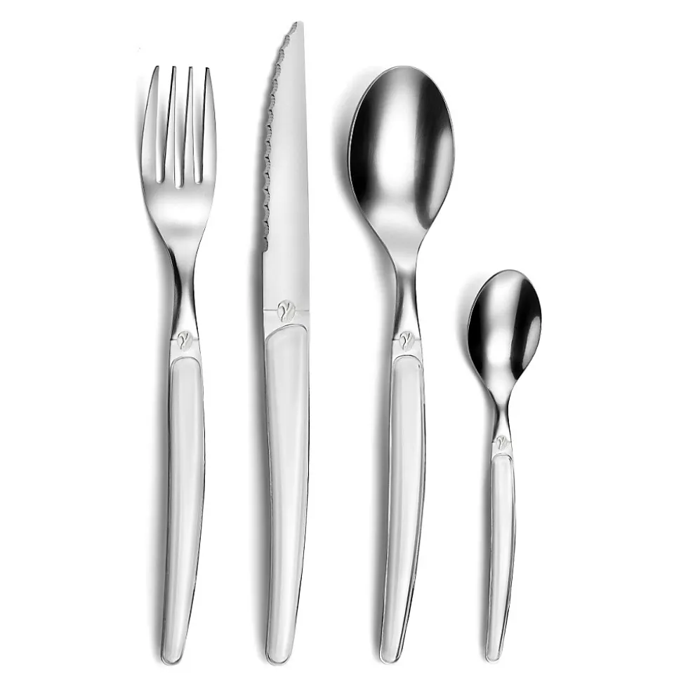 - Fourchette de table 20.4 cm, Cuillère de table 20.4 cm, Couteau steak 22.4 cm, Cuillère à café 13.5 cm