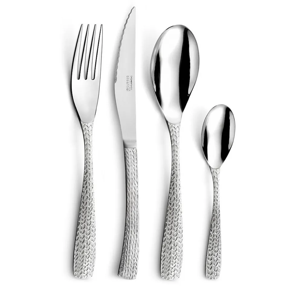 - Fourchette de table 20.6 cm, Cuillère de table 20.6 cm, Couteau steak 22.1 cm, Cuillère à café 13.8 cm