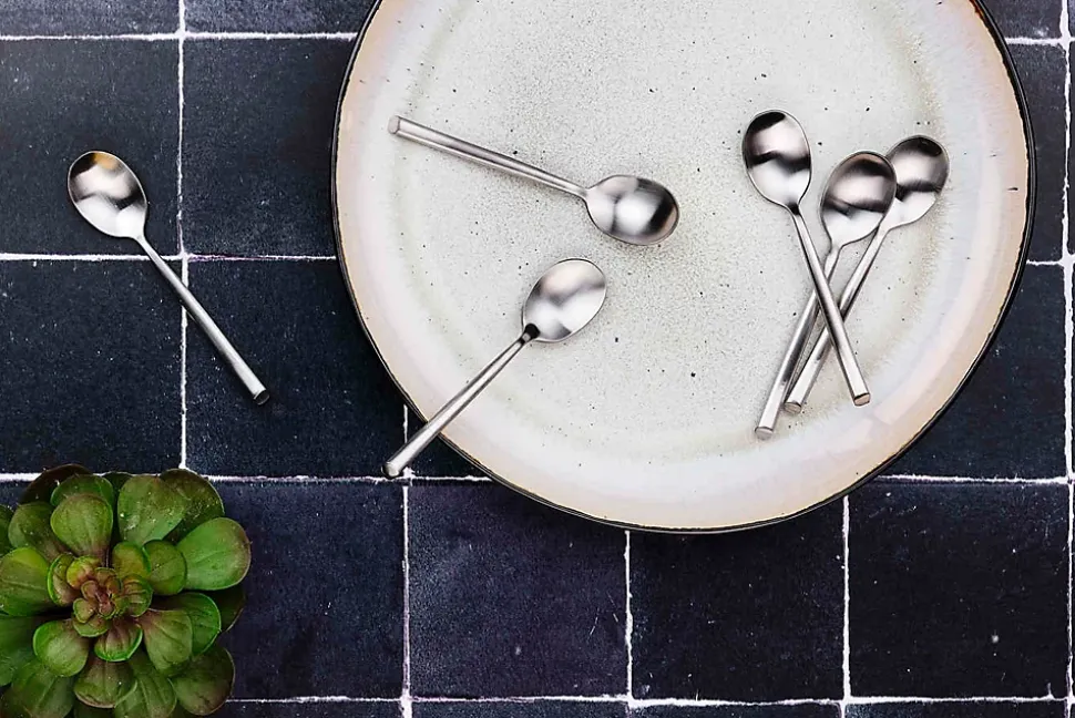 Ce coffret de 6 petites cuillères aux courbes asymétriques viendra compléter la ménagère du même nom. La petite cuillère est souvent plus utilisée, c’est pourquoi elle est aussi proposée séparément.Fabriqué en acier inoxydable pour résister à une utilisation quotidienne, ces couverts sont durables et d’un entretien facile au lave-vaisselle. Dans sa version de couleur inox avec une finition mate, ce modèle à l’effet miroir chic et éclatant illuminera votre table et étonnera vos convives.La collection NUDE réunit les indispensables de la préparation, du service et du dressage qui s’accordent à l’ensemble des collections d’arts de table Björn. Conçus à partir de matériaux de haute qualité, les produits NUDE résistent à l’épreuve du temps et s’utilisent au quotidien comme pour les grandes occasions en apportant un bel équilibre à votre table.