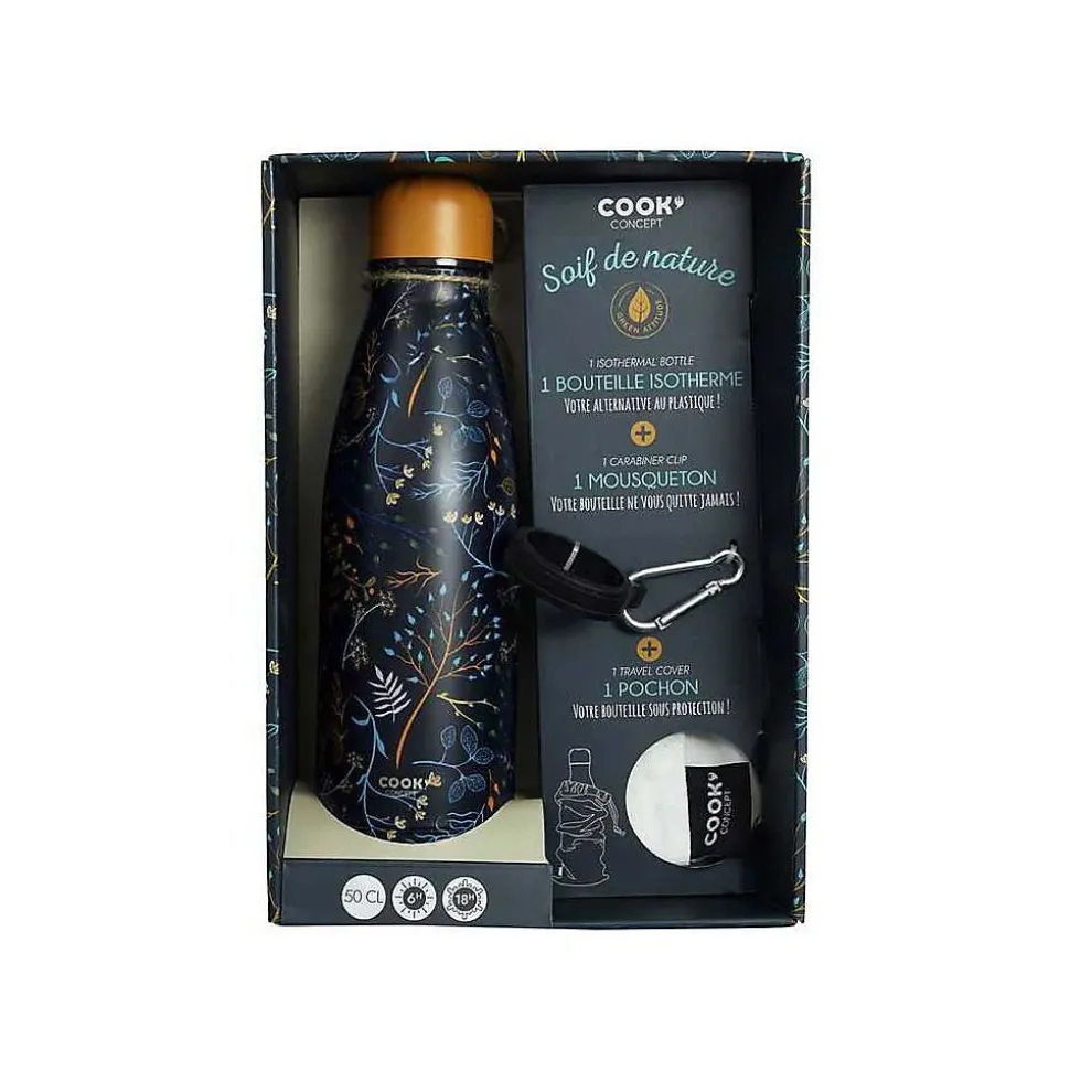 Aspect : Coloris = Bleu Jaune • Matériau principal = Acier Inoxydable • Matériaux secondaires = Polypropylène Silicone • Dimensions : Diamètre (en cm) = 18 • Hauteur (en cm) = 26 • Longueur (en cm) = 18,50 • Profondeur (en cm) = 8,50 • Autres caractéristiques : Composition = 1 bouteille isotherme – 1 mousqueton – 1 pochon • Poids (en kg) = 0,28 • Coffret bouteille isotherme 50 cl avec mousqueton