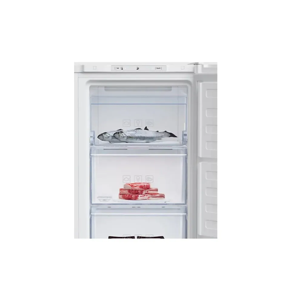 Le congélateur armoire BEKO RFNM200E40WN offre une capacité utile de 168 litres, un système No Frost ventilé, une alarme porte ouverte et une autonomie de 9 heures en cas de coupure d’électricité. Il dispose d’un écran tactile facile à utiliser, d’une porte réversible, et d’une ouverture optimisée sans débord pour une installation adaptée à votre cuisine.