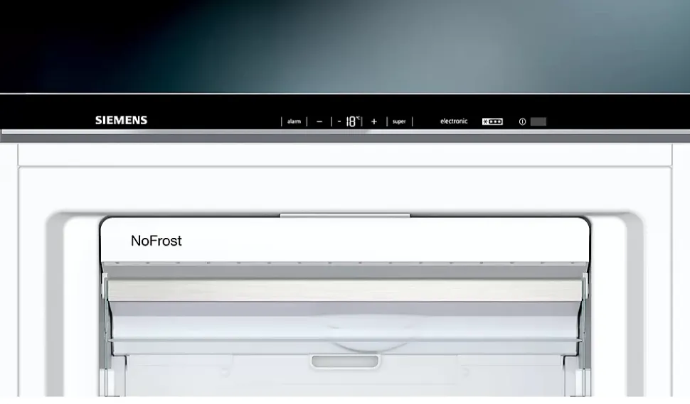 Congélateur armoire 70 cm no frost Siemens – Congélateur IQ500 Siemens GS58NAWCV. Congélateur armoire, équipé de la technologie noFrost pour en finir avec le dégivrage manuel, et le système freshSense qui ajuste en permanence la température à l’intérieur de l’appareil.La technologie noFrost prévient l’apparition de la glace, pour éviter le dégrivrage. multiAirflow pour une circulation de l’air optimale et unetempérature uniforme à tous les niveaux. Les lumières LED éclairent l’intérieur uniformément et sans éblouir. La bigBox offre un très grand espace de rangement, pratique, afin de congeler des denrées de taille importante. Les capteurs détectent automatiquement une augmentation dela température quand de nouveaux aliments sont placés dans lecongélateur. –