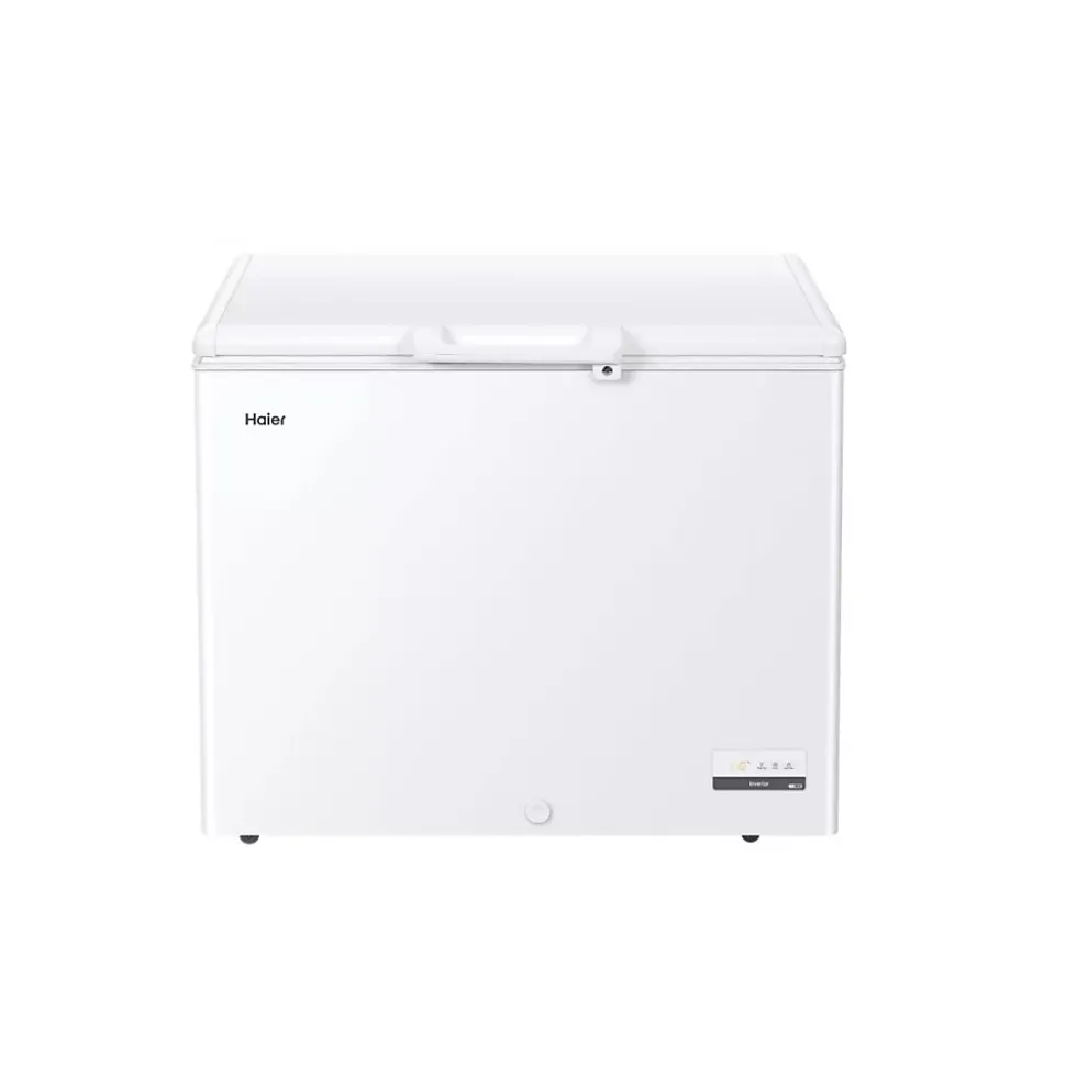 Congélateur coffre 111cm 300l Haier – Congélateur coffre HCE301E de Haier.Display électronique :Grâce au panneau électronique externe intuitif, réglez les différentes fonctions en un seul clic sans même ouvrir la porte de votre congélateur.Super congélation (-30°C) :Cette fonction permet d’accélérer la prise au froid de vos aliments. Grâce à une température allant jusqu’à -30°C, vos denrées seront conservées jusqu’à leurs consommations finales.Serrure :Une serrure robuste et efficace qui scelle l’ouverture de votre congélateur afin de garder vos aliments en toute sécurité.Eclairage LED :Un éclairage lumineux qui facilite la visualisation du contenu de votre congélateur. – Type de produit : Congélateur coffre.Classe climatique : SN-T. Cet appareil est conçu pour être utilisé à une température ambiante comprise entre 10°C et 43°C.Capacité nette totale : 300 litres.Classe énergétique : E.Classe d’efficacité sonore : B.Niveau sonore : 35 dB.Type de froid : Froid Statique.Eclairage LED : Oui.Autonomie : 25 heures.Pouvoir de congélation (kg/24h) : 16.Conso. d’énergie (kWh/an) : 232.Dégivrage : Manuel.Gaz réfrigérant : R 600 a.Nombre de paniers : 2.Matériau des paniers : Métal.Bac à glaçons : Non.Roulettes : 4.Cordon d’alimentation (cm) : 150/155.Display : Externe.Interface de contrôle : Electronique.Connectivité : Non.Type de moteur : Inverter.Type de poignée : Externe.Etendue de la température : -30 à 10°C.Serrure : Oui.Porte réversible : Non.Alarme de température : Visuelle.Fonction super congélation : Oui.Témoin super congélation : Oui.Finition intérieure : Aluminium martelé.Type de froid : Statique.Couleur : Blanc.Hauteur (cm) : 89.5.Largeur (cm) : 111.Profondeur (cm) : 62.Dimensions nettes avec roulettes (cm) : 89.5 x 111 x 62.Profondeur porte