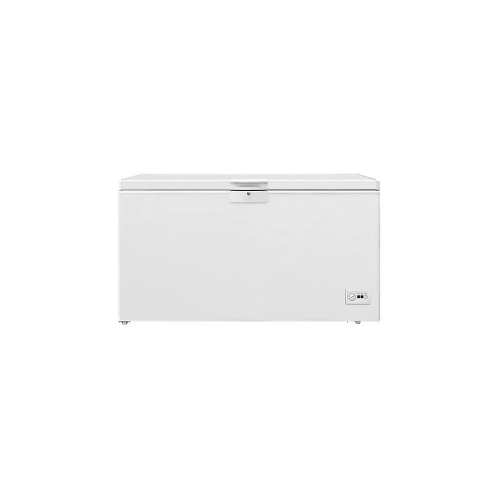 Congélateur coffre 155.5cm 350l Beko – Congélateur coffre HSM35050de Beko avec MinFrost : Dégivrez deux fois moins souvent votre appareil. Avec la technologie MinFrost, grâce à l’évaporateur intégré dans les parois du congélateur, la formation de givre est divisé par deux. La poignée de votre congélateur est dotée d’une serrure pour en protéger l’accès. Voyants de contrôle : Les voyants lumineux vous donnent des informations sur le fonctionnement de votre congélateur. Ils vous permettent de visualiser la mise sous tension, la congélation rapide et d’être averti en cas de remontée anormale de la température. Super isolation & autonomie 45h : Grâce à la super isolation, en cas de coupure de courant, ce congélateur permet de conserver en toute sécurité vos aliments pendant 45 heures. Technologie Freezer Guard -15°C : Grâce à une électronique et à un compresseur spécifique, ce congélateur est conçu pour fonctionner à une température ambiante atteignant jusqu’à -15°C. Idéal pour les pièces non chauffées ! – Type de produit : Congélateur coffre.Volume (total) : 350 L.Pouvoir de congélation : 15,8 Kg/24H.Autonomie : 45 heures.Nombre de panier(s) : 4.Niveau sonore : 35 dB.Conso élec. : 198 kWh/an.Label énergie : D.Catégorie sonore : C.Le + produit : Technologie MinFrostEclairage.Serrure sur la poignée.Régulation mécanique avec sonde.Livré avec 4 paniers.Régulation : Mécanique.Affichage T° : Non.Alarme : Non.Connecté : Non.Classe climatique : SN-T.Couleur : Blanc.Dimensions (LxHxP) : 155,5 x 86 x 67,5 cm.Poids net : 58 Kg.