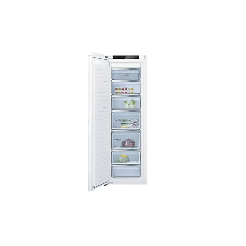 Le congélateur armoire intégrable Bosch GIN81VEE0 élimine définitivement le dégivrage grâce à sa technologie No Frost, assurant une température homogène et une conservation optimale des aliments. Son design compact et ses tiroirs modulables facilitent le rangement. Discret et économe, il fonctionne à seulement 35 dB avec une classe énergétique E.