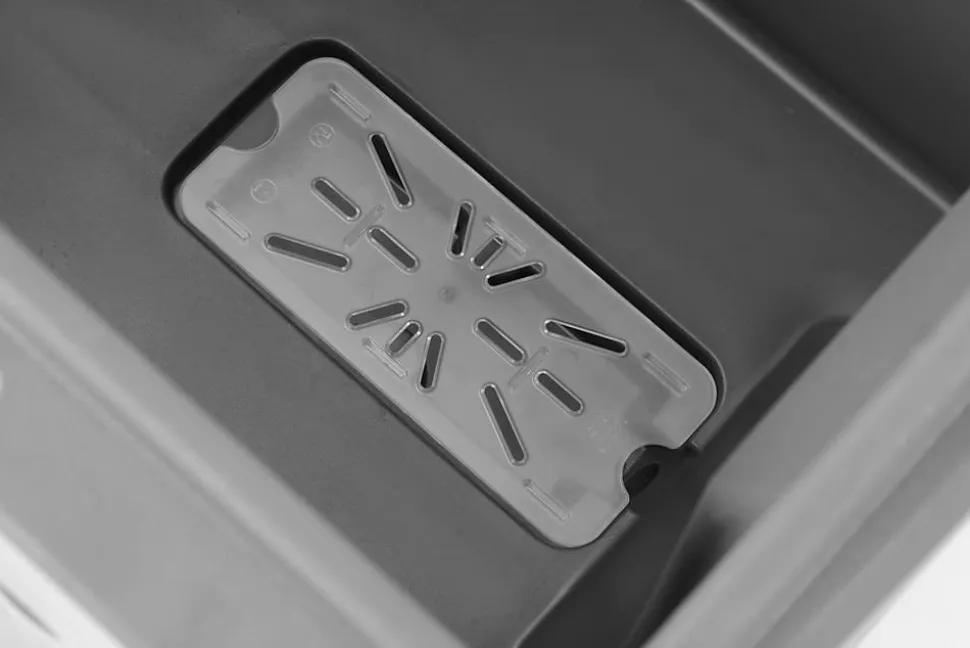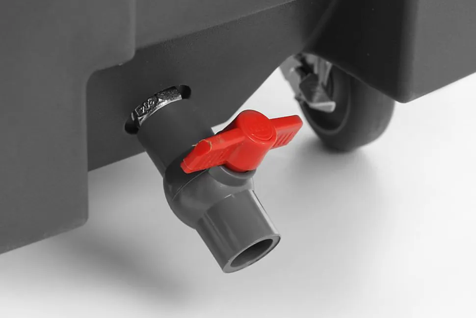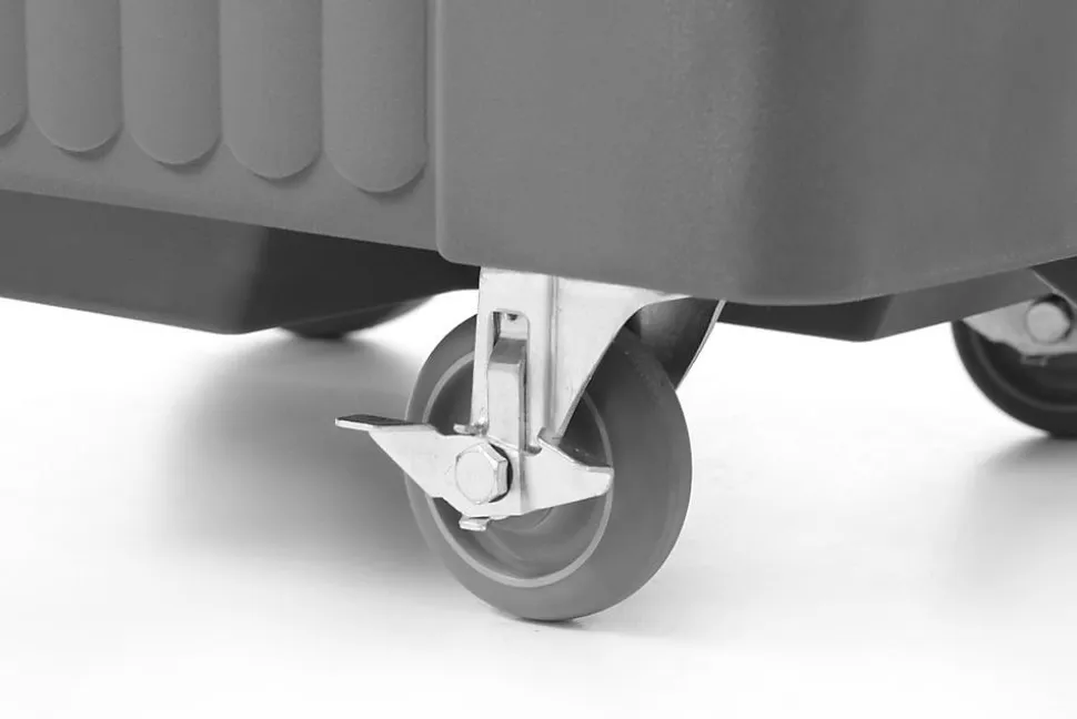 Conteneur isolé à glace – 110 L 110L 585x800x(H)745mm Idéal pour le transport à longue distance des glaçons. Permet de conserver la glace dans des bars mobiles au bord des piscines, mers ou lacs. Fait en polyéthylène solide et résistant aux chocs et impacts. Equipé d’une mousse d’isolation épaisse afin de maintenir la température de la glace le plus longtemps possible. Paroi intérieure résistante aux éraflures et rayures. Poignée ergonomique intégrée. Deux grandes roulettes (ÿ 20 mm) qui conviennent pour un sol inégal et 2 roulettes (ÿ 10 mm) avec frein. Tuyau d’écoulement profilé pour la glace fondue dans la chambre, avec robinet. Robinet, cuillère à glace et égouttoir inclus (robinet est à 90 mm du sol).