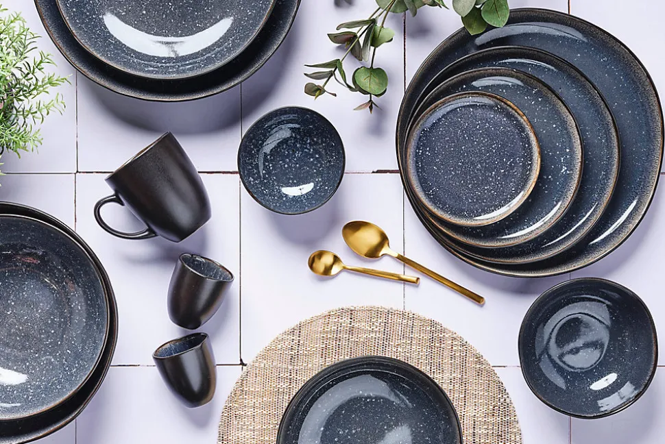 La corbeille à fruits en grès est un plat pratique et design qui trouve facilement sa place dans toutes les pièces de vie de la maison. Idéale pour des préparations conviviales chaudes et froides, on y met évidemment des fruits ou légumes de saison sur un buffet ou une table basse pour ajouter une touche fraiche et contemporaine.En ce qui concerne sa fabrication, après une première cuisson de l’argile à basse température, des émaux réactifs de couleurs différentes s’appliquent sur le grès et lui donnent un relief unique et un effet de ciel étoilé. L’apparition de nuances de teintes que l’on retrouve d’une pièce à l’autre est le résultat d’un savant mélange artisanal des techniques de cuisson et du mode d’application de l’émail.La collection IRIS est un mélange subtil entre sobriété et originalité. Sa couleur noire à l’extérieur apporte une touche élégante et raffinée à votre table tandis que les émaux réactifs à l’intérieur lui confèrent un relief profond et unique. Dans sa déclinaison BLEU NUIT apparait un ciel étoilé astral qui installe une atmosphère bucolique pour de longues soirées conviviales.