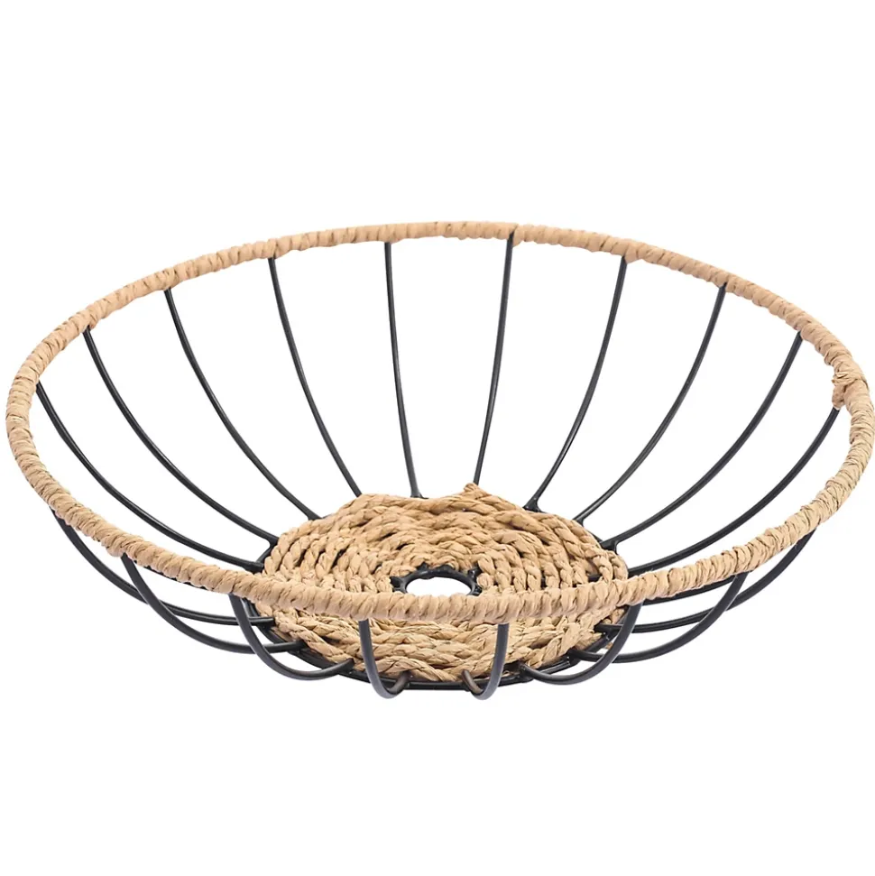 Corbeille à fruits ronde en métal noir et corde