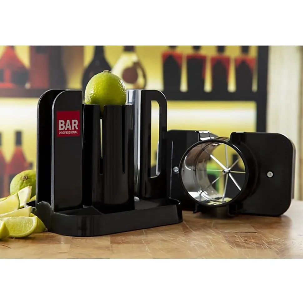 Produisant huit tranches égales de fruits en quelques secondes, ce coupe citron professionnel est parfait pour les établissements soignant la présentation. Il suffit de placer votre fruit dans le trancheur en position verticale, aligner le poussoir du haut, puis appuyez fermement pour créer des garnitures de cocktails parfaites.Il peut également être utilisé avec d’autres produits alimentaires tels que des petits champignons, des pommes et des tomates (diamètre max 65mm).Tranche en 8 morceaux. Diamètre trémie 65mm. Dimensions: 187(H) x 197(L) x 203(P) mm Matériel: Acier inoxydable Poids: 1 kg Découpe les citrons en 8 parties égales 8 lames rondes en acier inoxydable Taille des tranches idéale pour les goulots de bouteilles Parfait pour le thé glacé, les bières et les cocktails Plus sûr qu’un couteau Gain de temps Lames en acier inoxydable