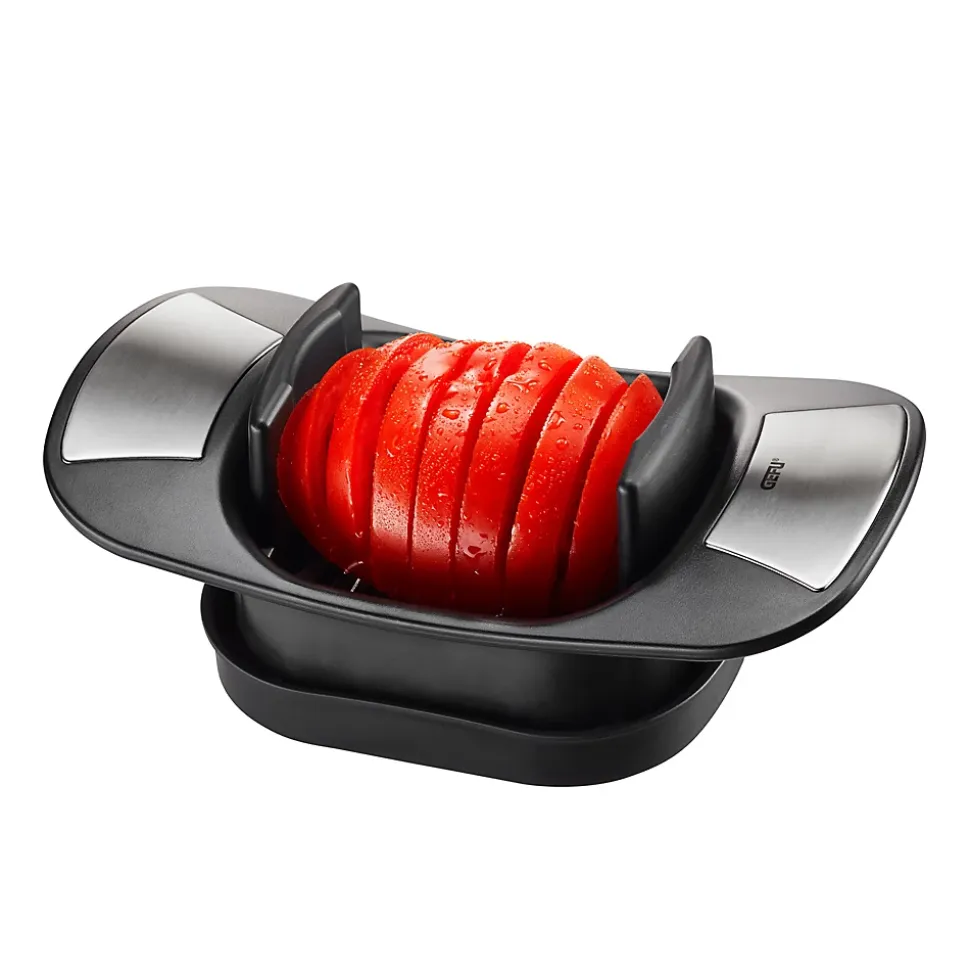 Découvrez le coupe tomate et coupe mozzarella Caprese de Gefu, l’outil indispensable pour préparer facilement et rapidement des salades délicieuses et esthétiques. Conçus avec une qualité exceptionnelle, ces deux outils vous permettent de créer des salades dignes des plus grands chefs en un clin d’œil.Il est spécialement conçu pour couper les tomates et la mozzarella en tranches parfaites et uniformes. Il vous suffit de placer la tomate ou la mozzarella sur la lame tranchante et d’appuyer légèrement pour obtenir des tranches nettes et régulières. Fini les tomates écrasées ou mal découpées, vous obtiendrez des tranches impeccables pour sublimer vos salades.Collection : DECOUPE Matière : Acier inoxydable (inox) Couleur : Noir Longueur : 20.00 cm Largeur : 12.00 cm Hauteur : 8.00 cm Compatible Lave-vaisselle