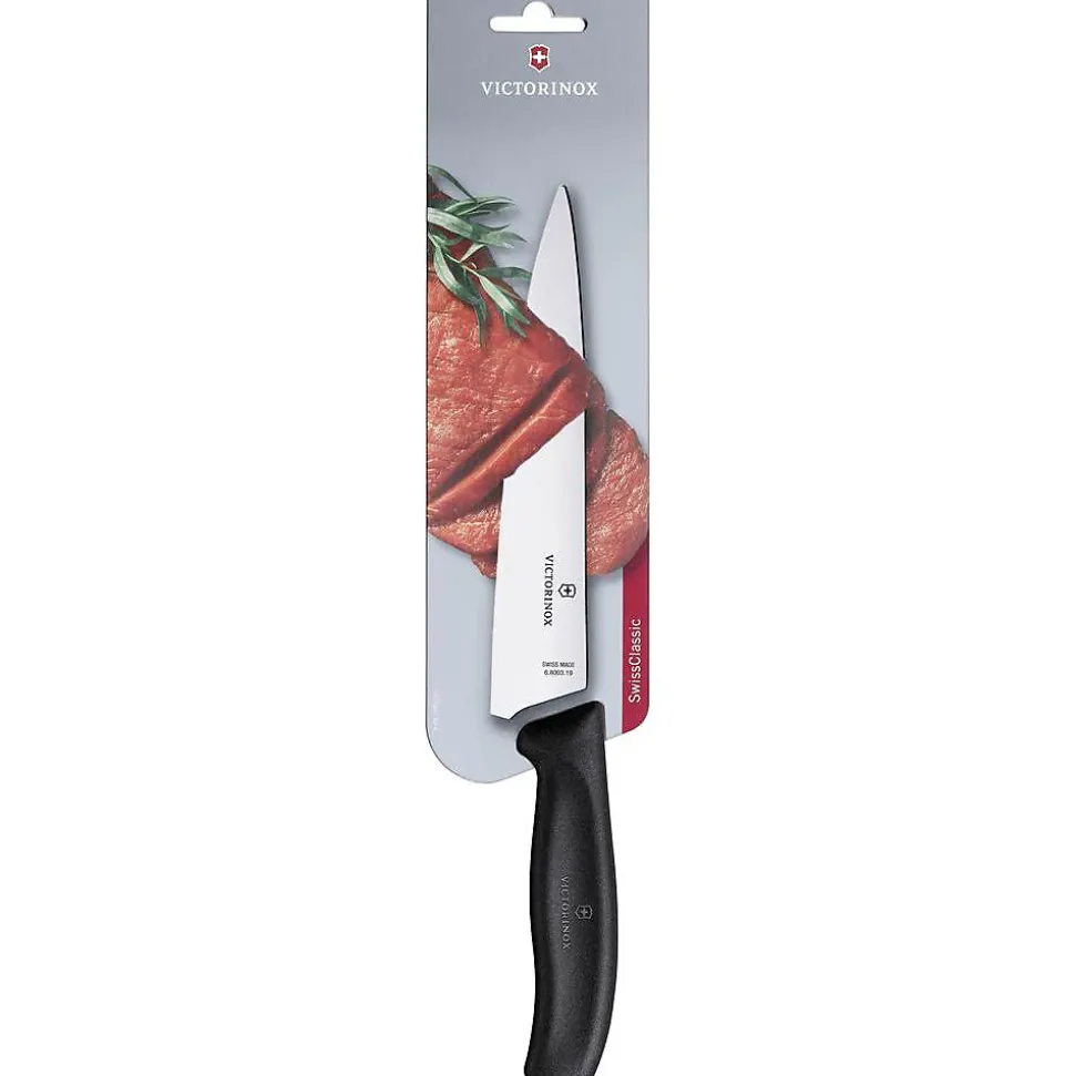 Couteau à découper lame inox 19cm Victorinox – Couteau à découper et éminceur Victorinox 6.8003.19B. Cuisiner ne se résume pas à la simple préparation d’aliments. Cuisiner est une passion, un hobby, une culture et parfois aussi un art. Mais cuisiner devant tout d’abord être un plaisir, le choix adéquat des ustensiles de cuisine est donc déterminant. Avec sa lame en acier, ce couteau est équipé d’un manche en Fibrox anti-dérapant et ergonomique. Cela vous permettra de préparer vos aliments en toute sérénité et sécurité. Facile à nettoyer et compatible lave-vaisselle. – Matière de la lame : Inox.Longueur de la lame : 19cm.Matière manche : Fibrox.Riveté : Non.Coloris : Noir.Résistant au lave-vaisselle.Poids : 109 g.