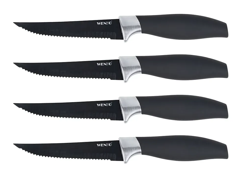 Lot de 4 couteaux à steak noirs en acier inoxydable Otis