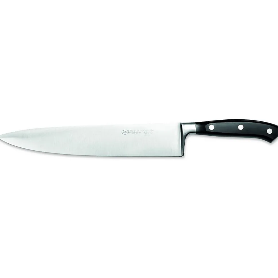 Couteau à lame rigide en acier inoxydable, idéal pour couper et éplucher les fruits et légumes. Les couteaux de la ligne Ergoforge sont forgés individuellement en une seule pièce. Manche en résine acétal avec rivets en acier inoxydable. Entièrement fabriqué à la main.. Ce couteau est l’outil le plus utilisé dans la cuisine en raison de son incroyable polyvalence. Qu’il s’agisse de trancher une viande fine ou de découper des légumes en cubes parfaits, sa lame large et tranchante est prête à relever tous les défis culinaires. Forgée en acier, elle offre une dureté exceptionnelle qui garantit une coupe précise et durable. Le manche ajoute une touche d’élégance à votre ustensile, mais offre également une prise en main ergonomique et confortable, garantissant un équilibre et un contrôle supérieurs lors de la découpe. | Collection: Ergoforge 6 | Couleur: Noir | Matériel: Acier Inoxydable, POM-C | Ensemble: 1 | Dimensions du Produit: L2,3xP6xA40 cm | Poids du Produit (Kg): 0,35 | Poids Supporté (Kg): – | Dimensions de Boîtes: W2,3xD6xH40 cm | Poids de Boîtes (Kg): 0,39 | Nombres de Boîtes: 1
